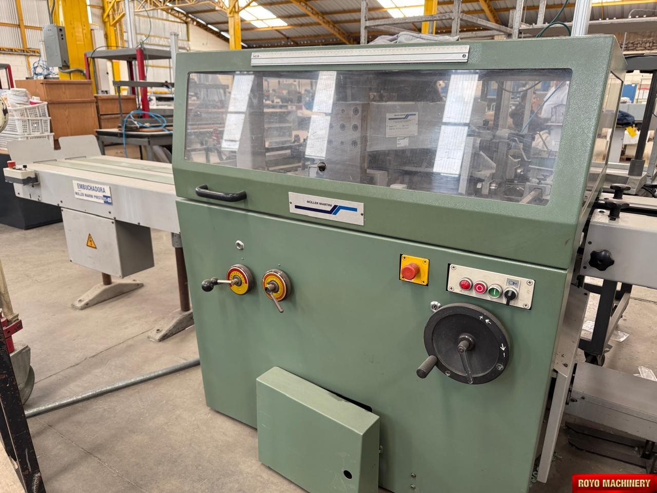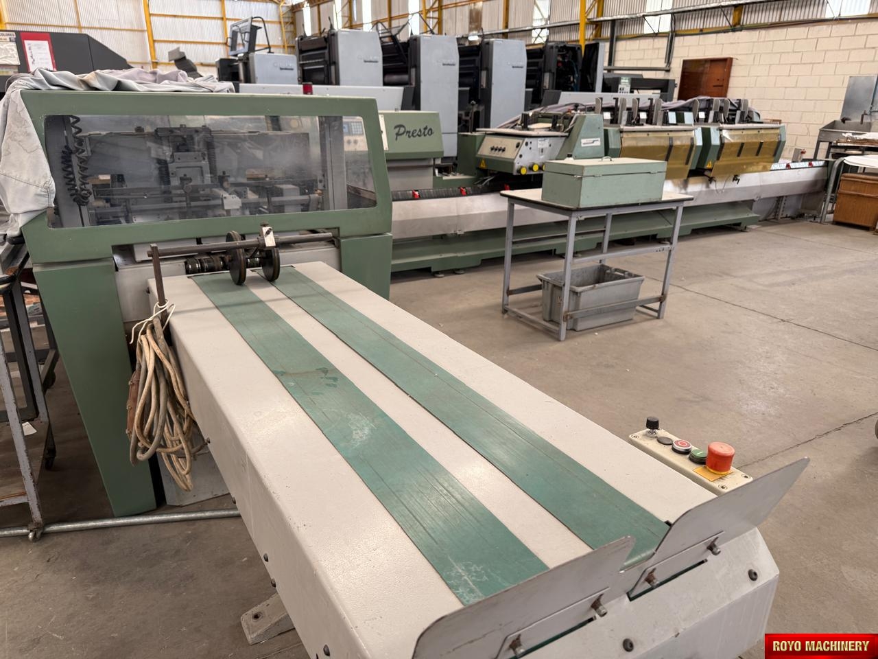 Guillotina Trilateral, Engrapado a Caballete, Estacion de alimentacion manual, Alimentador de carátula, Aspirado de Desperdicio, Max. 6000 cycles per hour, Salida de Banda, 4 Estaciones de Alzado, 2 Cabezas de Engrapado