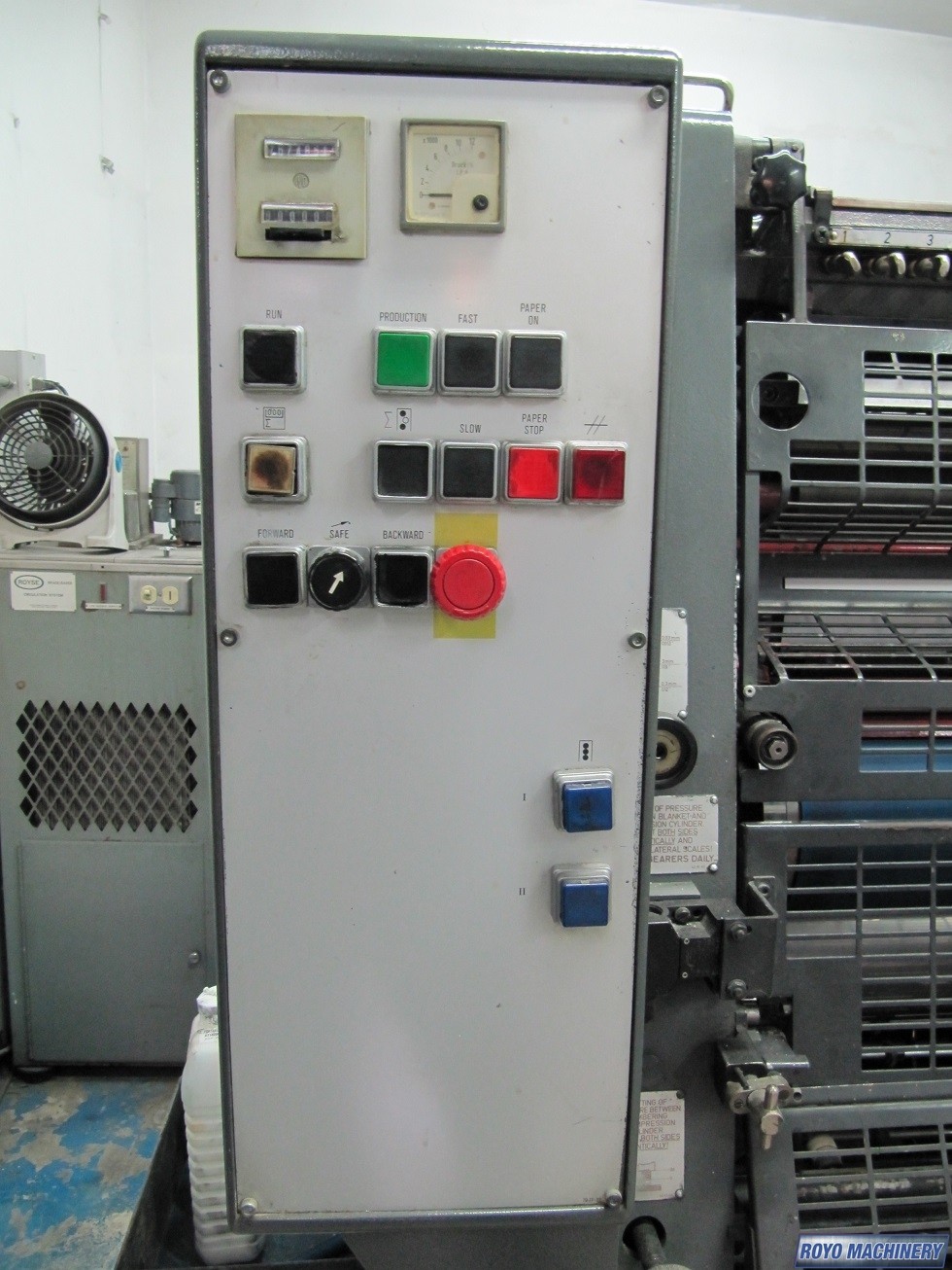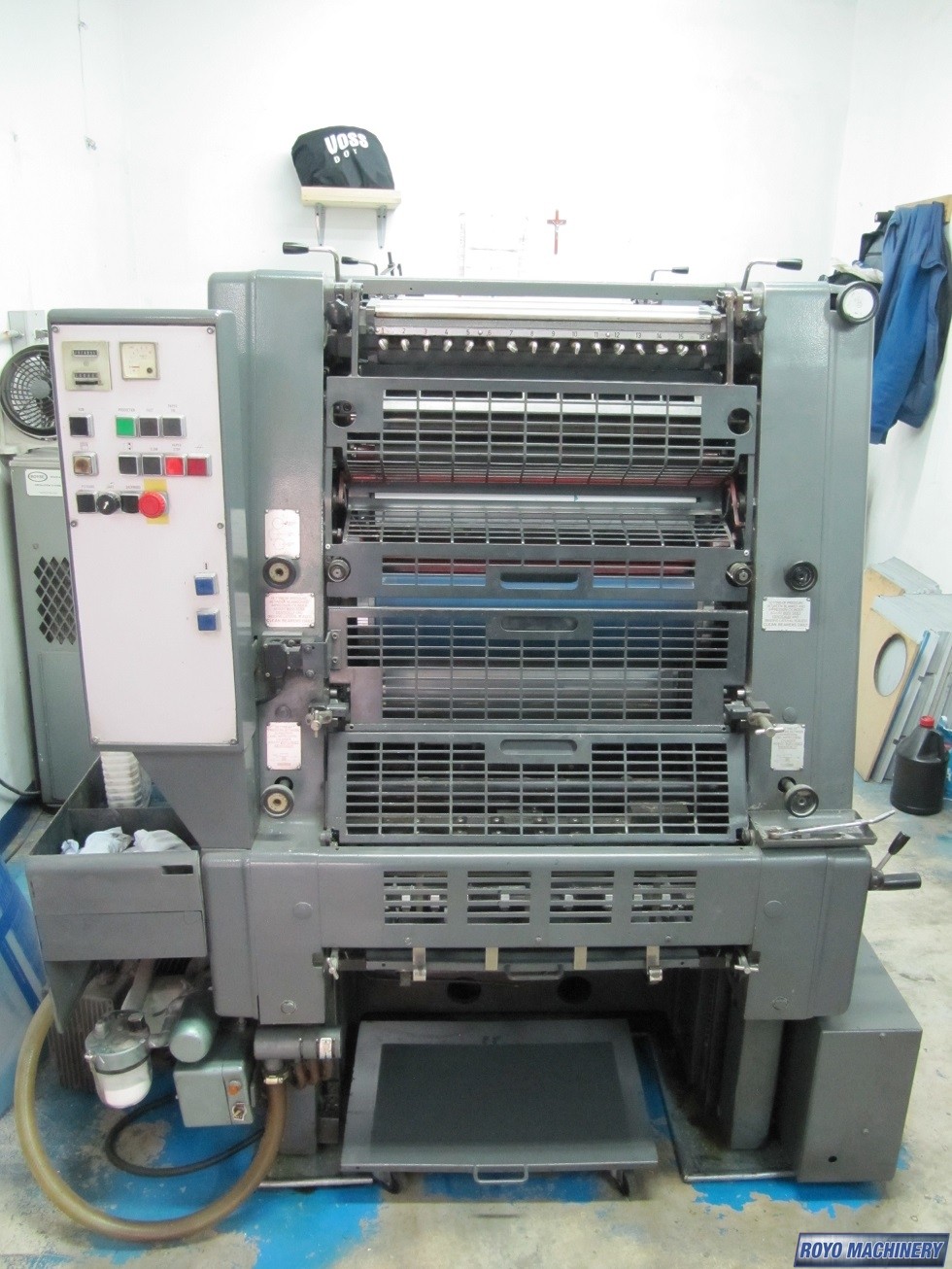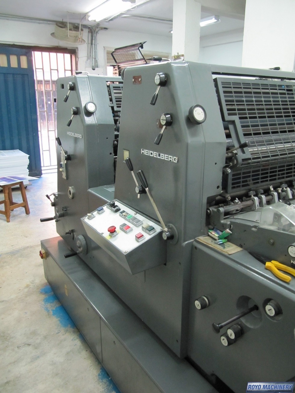 Alimentador de Hojas Sueltas, Recirculador refrigerado de fuente Royse, Equipo para venta en Colombia, Pila de Salida Baja, Detector de doble hoja electrónico, Pines de registro Bacher en las mordazas, Salida de cadena, 8000 Impresiones por hora, Humectación Alcohol, Sistema de Polvo Weko, Engranaje para numeración, Versión Plus