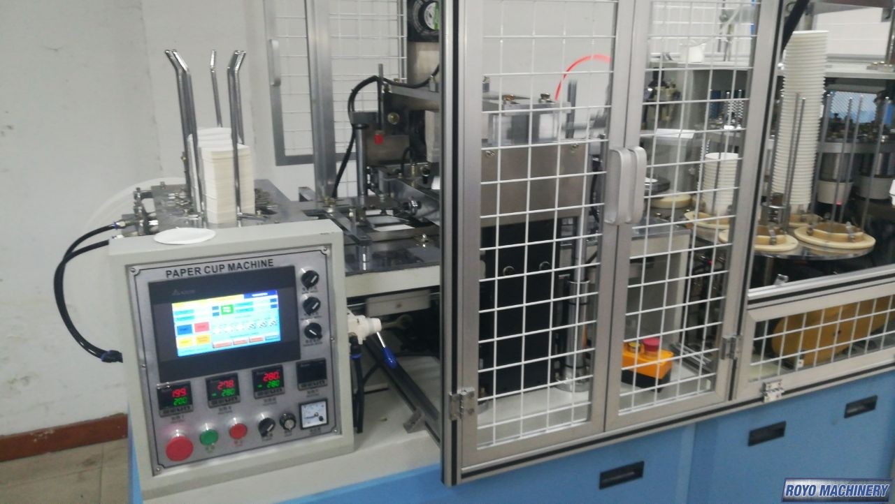 Potencia Requerida: 15KW, Sellado por Ultrasonido, Peso Neto: 2200 KG, Velocidad: 70-90 Piezas/min, Tamaño del vaso: 3-12 oz, Leva Abierta, Material: Recubierto de PE de una o dos caras, Enrollado del fondo: Resitencia para PE de una sola cara, Calentamiento del fondo: Aire Caliente, Presión de aire: 0.3-0.6 Mpa - Consumo: 0.1-0.3 m3/min, Barrera de seguridad, Colector de vasos con conteo y salida por tubo, Especificaciones sujetas a cambios sin previo aviso
