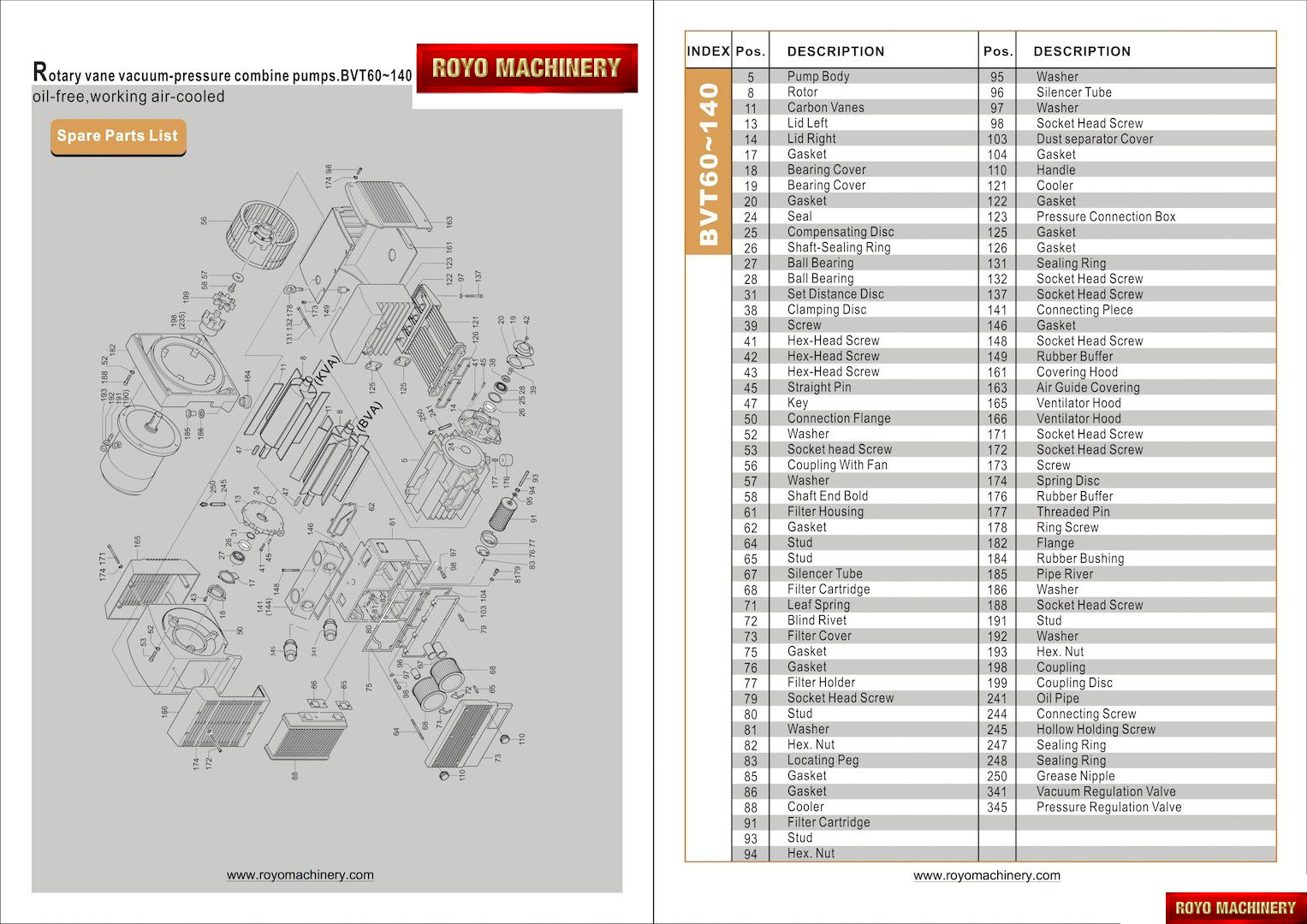 Libre de aceite, Aspas de carbón, 9.0kw (60Hz), 3 Fases, 230/400V, 168 metros cúbicos por hora, +/- 600mbar, Una entrada - Una salida, Especificaciones sujetas a cambios sin previo aviso