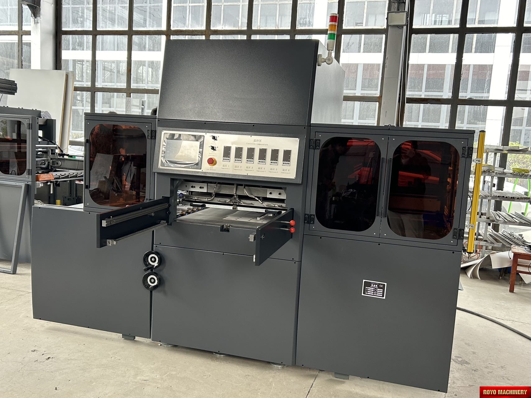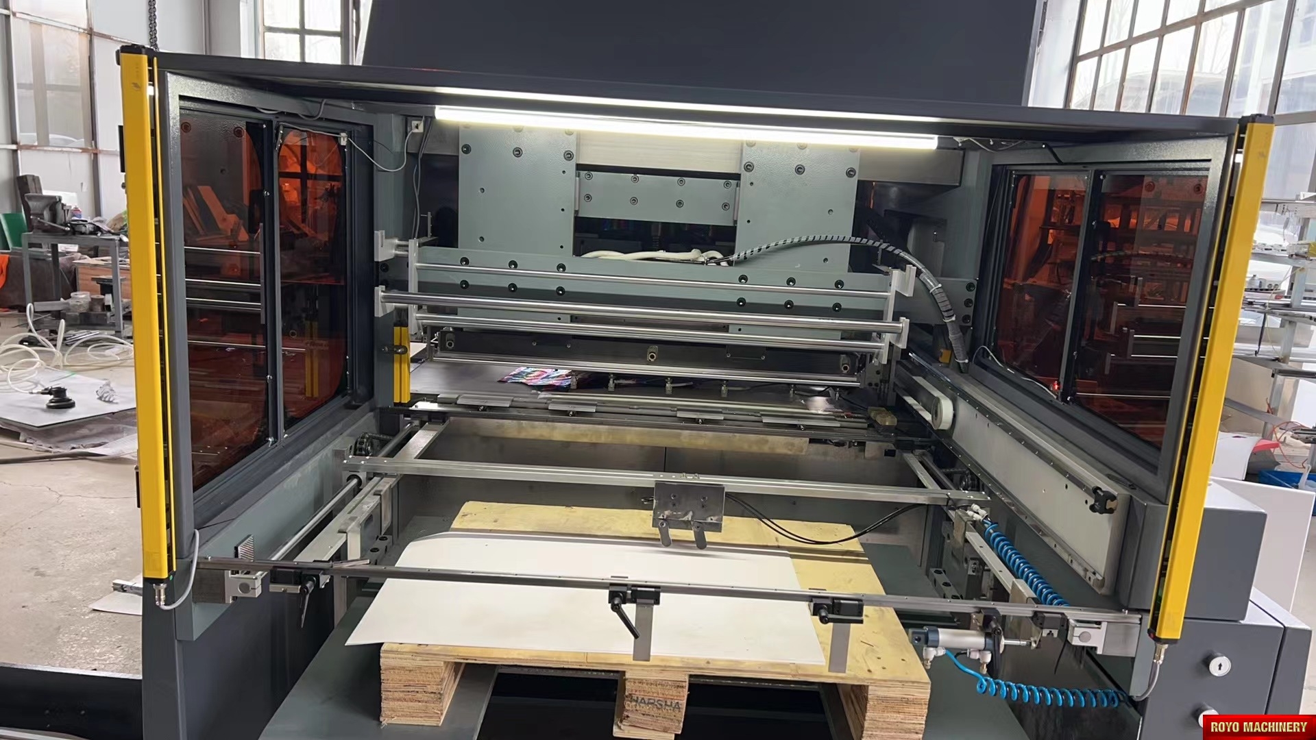 Peso: 3000 kg, Fuente de energía: 220V 60Hz 3Fases, Potencia requerida: 24kW, Material: 80-2000g/m2, Presión máx. de estampado: 80 tons, Tamaño mín. de papel: 100x100mm, Tamaño máx. de papel: 820x570mm, Velocidad máx. de estampado: 1500pcs/h, Tamaño máx. de foil: 550x400mm, Temperatura de calentamiento: 30-200C, Exactitud de estampado: +-0.1mm, Altura de la pila de alimentación: 600mm, Dimensiones: 2580 x 1900 x 2000mm, Especificaciones sujetas a cambios sin previo aviso