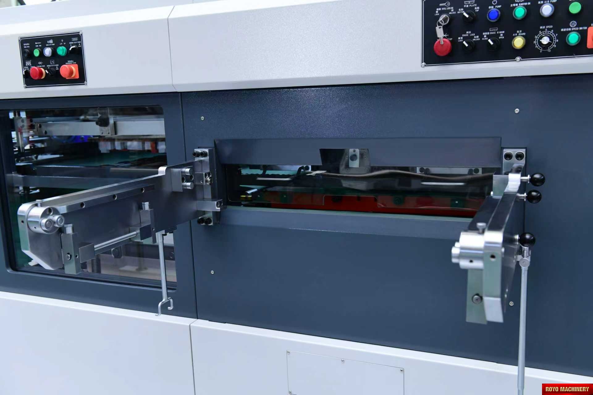 Air clutch, Automatic pressure adjustment, CE Standard Machine, Central lubrication with auto pump , Total Weight: 17.8 Tons, Total Power: 18kw, Step-less speed control, Pull or Push side lay on both sides, Paper or cardboard thickness: 100-2000 gsm, Min. Paper size: 400 x 350mm, Max. Speed: 8000 strokes per hour, Max. die cutting pressure: 300 Tons, Feeding Pile Height: 1580mm, Digital LED control panel, Die cutting Precision: +/- 0.15mm, Delivery Pile Height 1400 mm, Corrugated board up to 4mm, Specifications are subject to change without notice