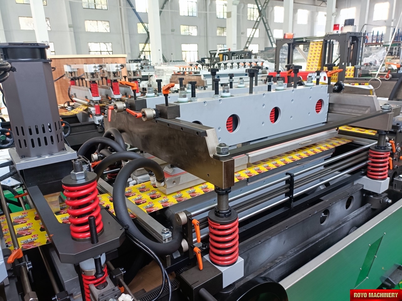 Max. parent-web diameter: 800mm, Max. parent-web width: 1200mm, Material: Heat sealable laminated film, Dimensions: 7700 x 4000 x 1900mm, Max. film speed: 40m/min, 3 side seal with zipper bag max. speed: 120 pcs/min, 3 side seal bag with zipper width: 60-250mm, 3 side seal bag with zipper length: 75-540mm, 3 side seal bag width: 75-550mm, 3 side seal bag max. speed: 200 pcs/min, 3 side seal bag length: 50-300mm seals two times, Power supply: 43kw, 220V/3P/60Hz, Stainless steel, Unwinding core inner diameter: 3", Weight: 5000kg