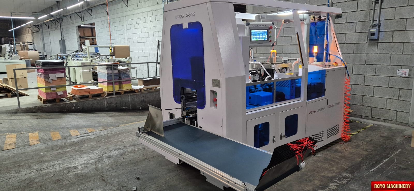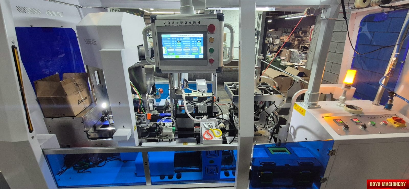 Paper bag width: 6" - 17.75", Rope inserting and fixing, Rope end tipping and cutting, Paper bag rope auto inserting machine, Paper bag height: 3.25" - 17.75", Hole punching, Automatic paper bag stringing machine, Weight: 2800kg, Total power: 12Kw, Speed: 50pcs/min, Rope length: 320-450mm, Paper thickness: 157-300g, Optional eyeletting, Hole spacing: 75-180mm, Dimension: 2800 x 1350 x 2200mm