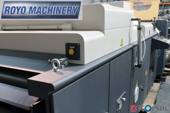 Full Surface UV coating and Varnishing Machine, Weight 4.6t, Paper thickness: 80-450 gsm, UV lamp 3x 9.75kw, Dimensions: 10895 x 1750 x 1740 mm, Max. Speed: 7000 sheets per hour, Total Power: 44kw, Max. Paper size 1040 x 760mm, Min. Paper size: 300 x 440mm, Specifications are subject to change without notice