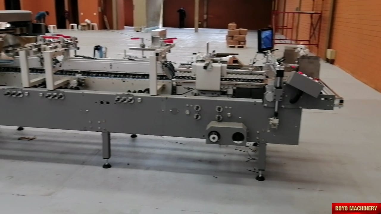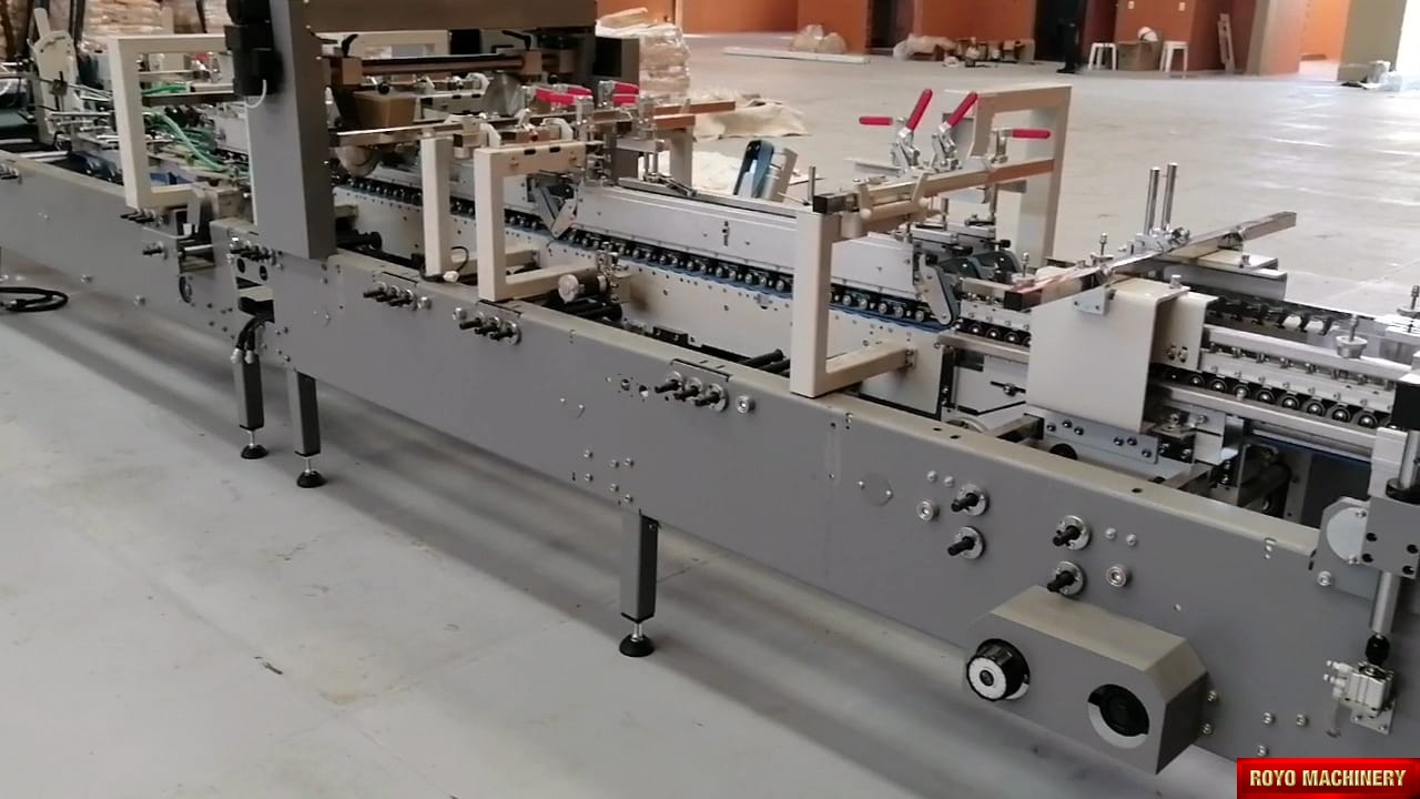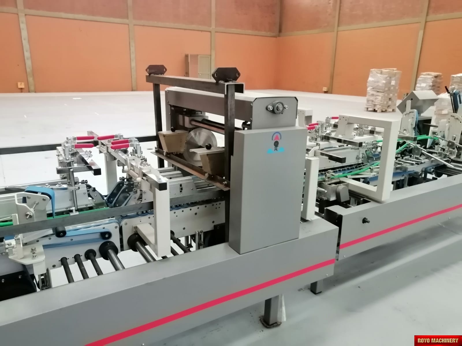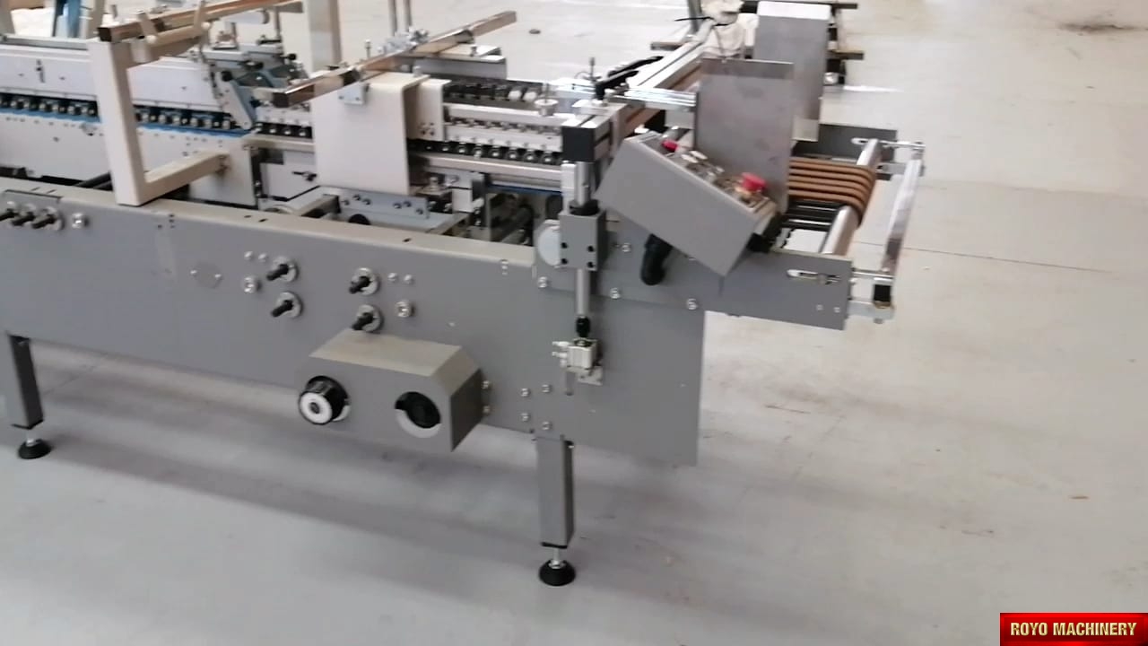 Edge-grinder, Crash lock bottom, Continuous friction feeder with variable speed, Configuration: Feeder-Pre Folding-Lock Bottom-Folding-Pressing, Carton thickness: 200-700 gsm, Weight 3.5t, Total Power: 8.1kw, Speed: 0-260m/min, Min. Box size: 75 x 80mm Side Gluing, Min. Box size: 180 x 90mm Lock Bottom, Max. Box size: 650 x 550mm Side Gluing , Max. Box size: 600 x 550mm Lock Bottom, Dimensions: 12000 x 1410 x 1600 mm, Adjustable electronic pile vibrator, Disc applied double upper gluing system, Straight Line, Side gluing: 135 degrees pre-folding for No.1 line, Lock bottom: 90 degress pre-folding for No.3 line