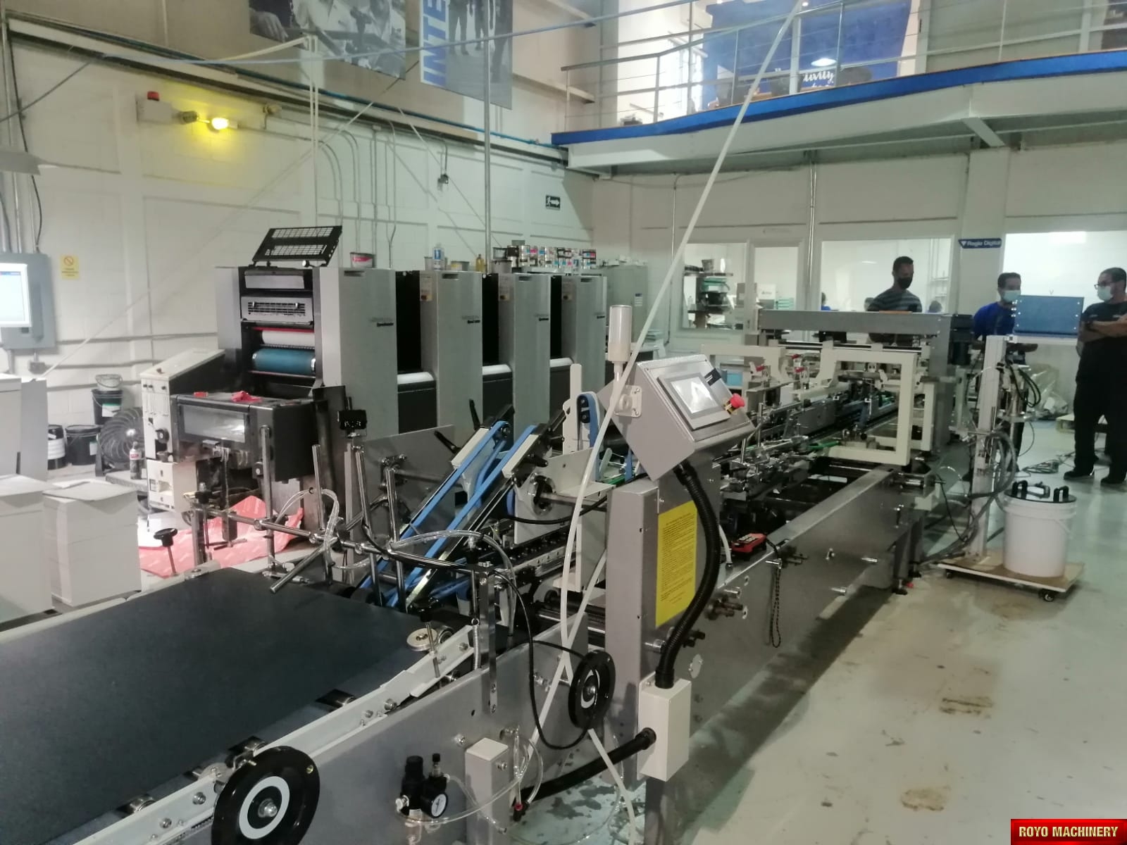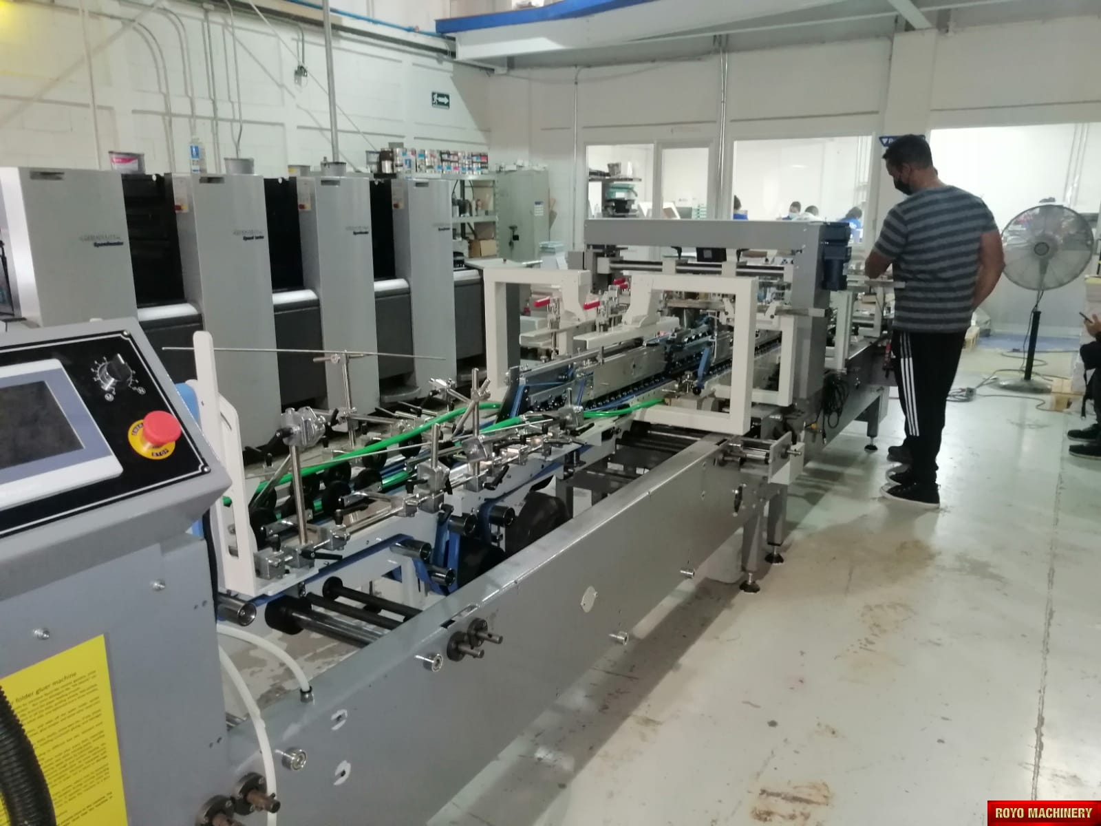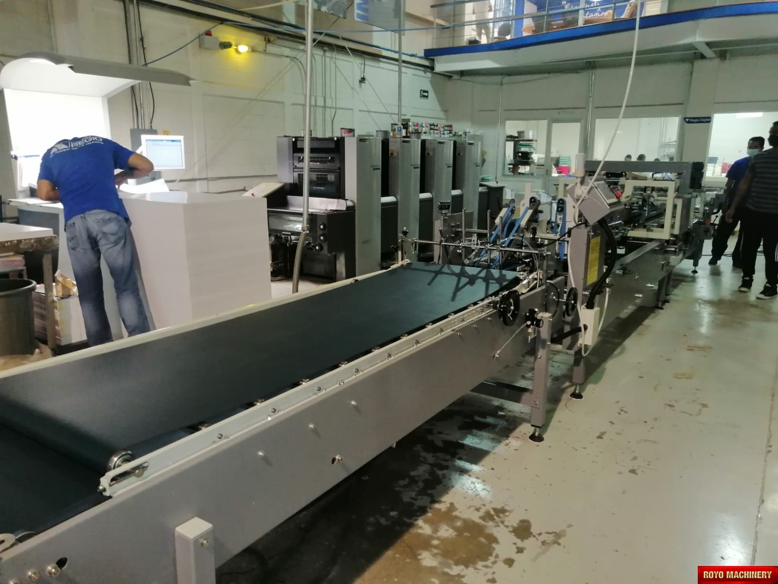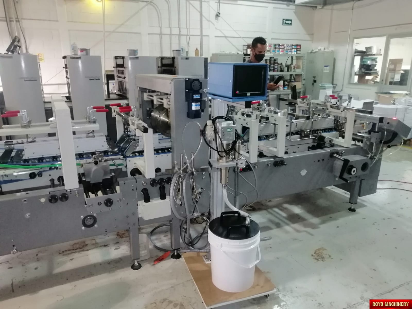 Continuous friction feeder with variable speed, Weight 4.2t, Total Power: 10.26kw, Min. Box size: 200 x 100mm Lock Bottom, Min. Box size: 75 x 80mm Side Gluing, Speed: 0-300m/min, Straight Line, Max. Box size: 800 x 550mm Side Gluing , Max. Box size: 700 x 550mm Lock Bottom, Edge-grinder, Double wall (optional), Disc applied double upper gluing system, Dimensions: 12000 x 1560 x 1600 mm, Crash lock bottom, Configuration: Feeder-Pre Folding-Lock Bottom-Folding-Pressing, Carton thickness: 200-700 gsm, Adjustable electronic pile vibrator, Side gluing: 135 degrees pre-folding for No.1 line, Lock bottom: 90 degress pre-folding for No.3 line