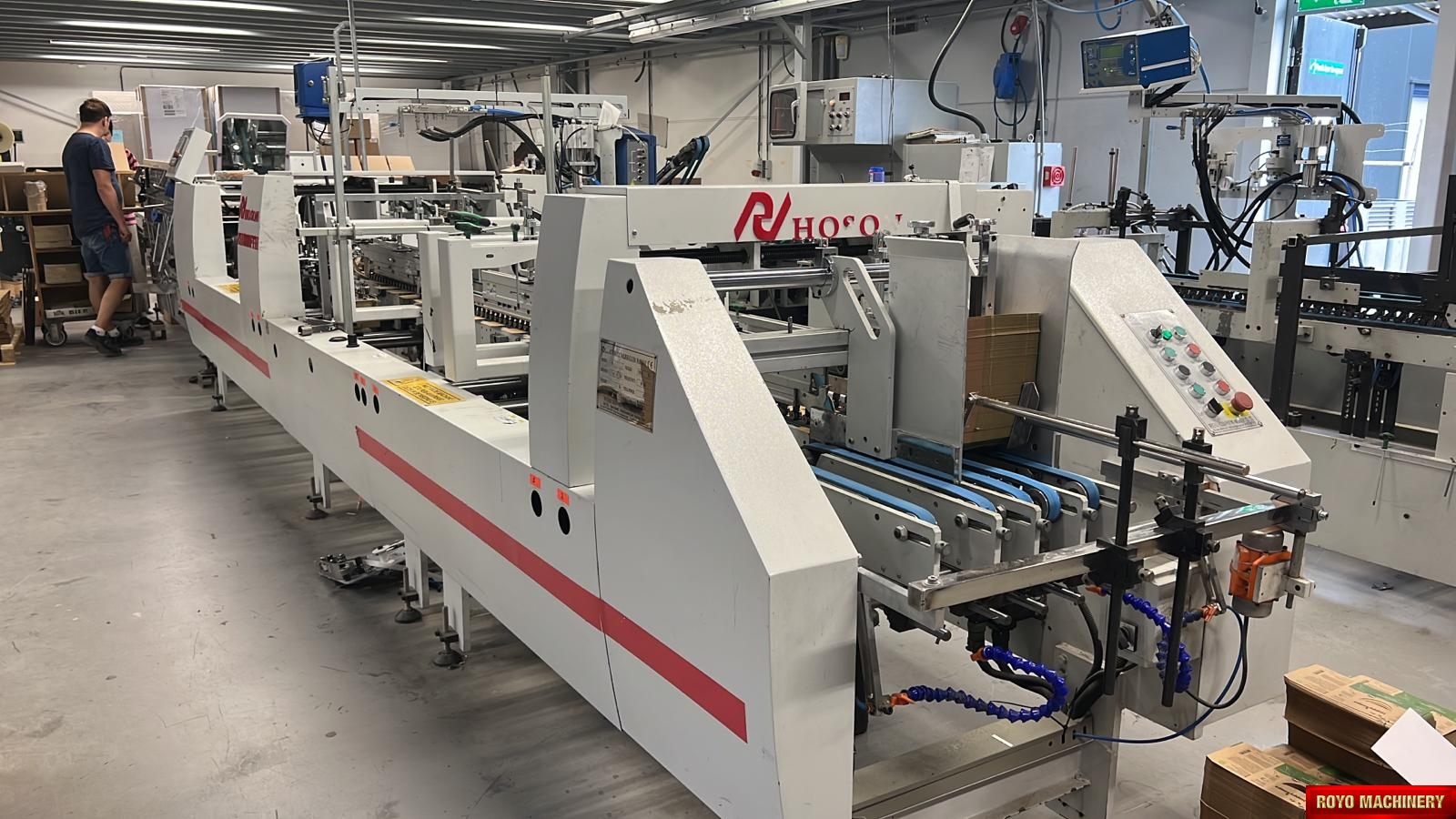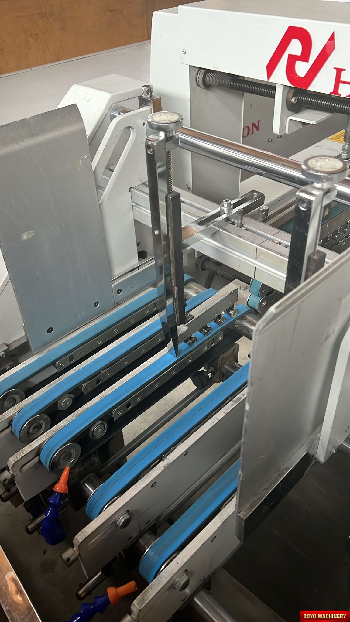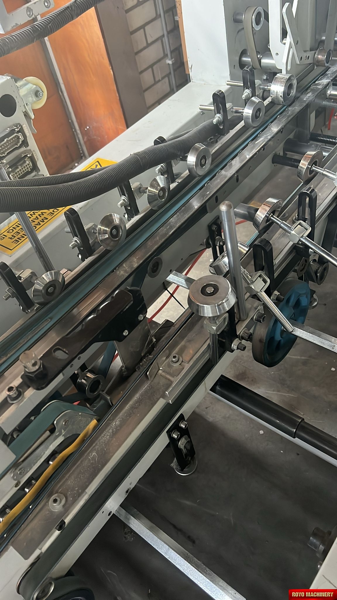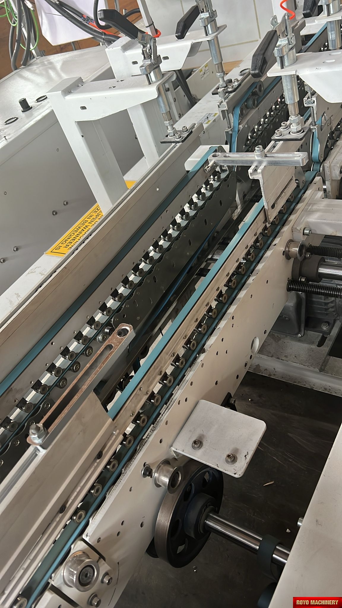 Continuous friction feeder with variable speed, Weight 4.2t, Total Power: 6.37kw, Min. Box size: 200 x 100mm Lock Bottom, Min. Box size: 75 x 80mm Side Gluing, Suggested HS Code: 8441.30.9000, Straight Line, Max. Box size: 800 x 550mm Side Gluing , Max. Box size: 700 x 550mm Lock Bottom, Edge-grinder, Speed: 0-260m/min, Disc applied double upper gluing system, Corrugated flute type: N F E, Crash lock bottom, One lower (left side) gluing tank, Carton thickness: 200-700 gsm, Side gluing: 135 degrees pre-folding for No.1 line, Lock bottom: 90 degress pre-folding for No.3 line
