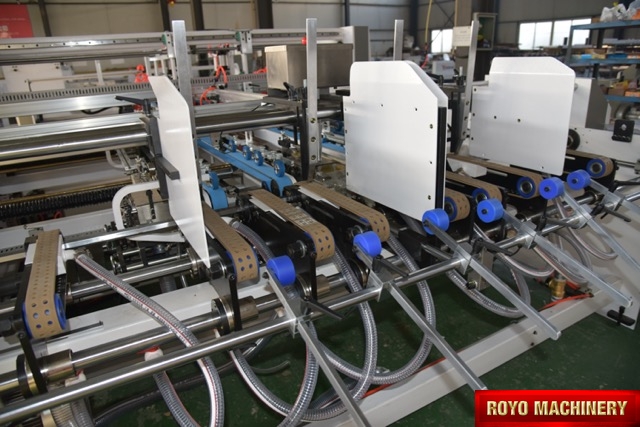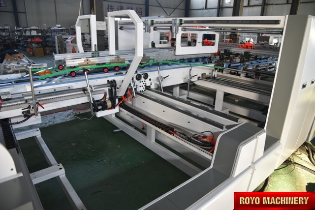 Electronic side gauge adjustment, Extra long conveyor (Optional), Hot glue applicator, In-line folder gluer, Max. Sheet Size: 1200 x 1200mm x 2, Max. Speed: 2500 pieces per hour, Min. Sheet Size: 500 x 300mm x 2, Pressing units at delivery end (Optional), Motorized carriage positioning (Optional), Weight: 5.5 Ton