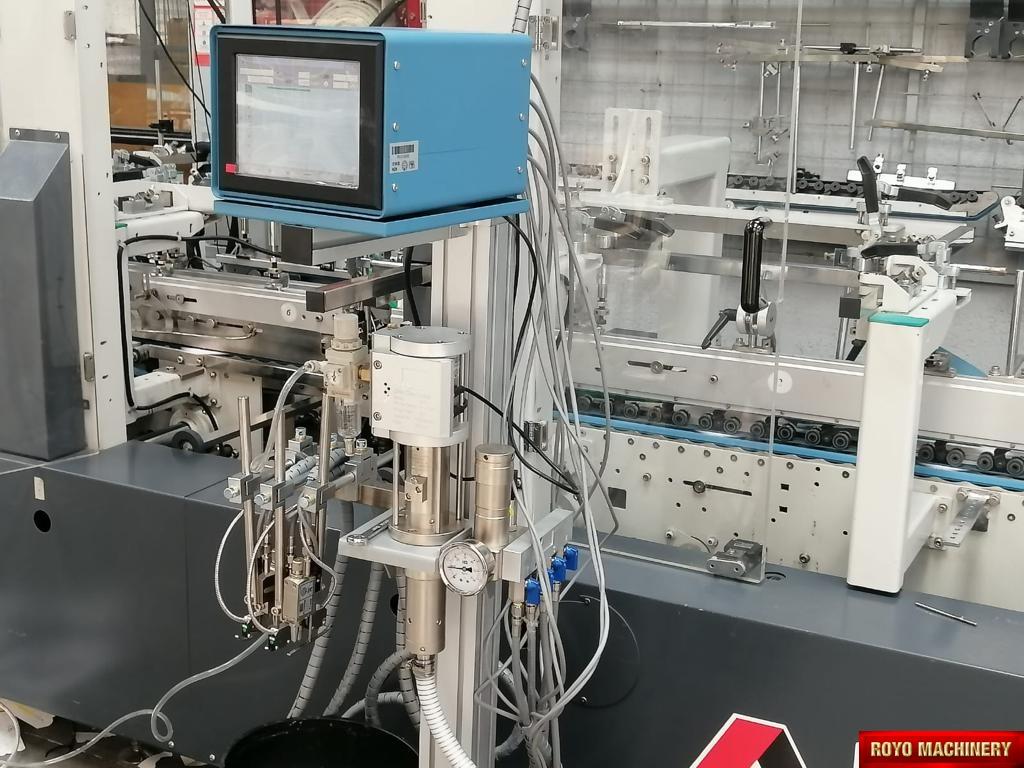 Water base adhesive , Touch screen LED display, Spray controller, Operating rate: Up to 600 meters/min, Number of spray guns: Up to 4, Number of optical sensors: Up to 4, Fully programable pattern with memory, Cold adhesive spray gun, Cold adhesive feeding unit, Adhesive viscosity: 700-2500 cPs (Brookfield LVT 3/30/28C), Adhesive pressure: 5-20 Bars, Accuracy: +/-1 mm at 100 meters/min