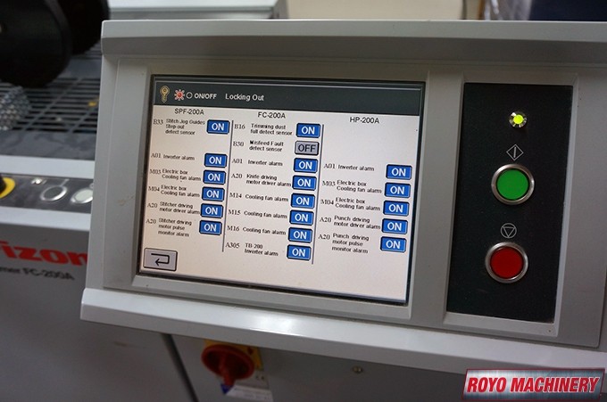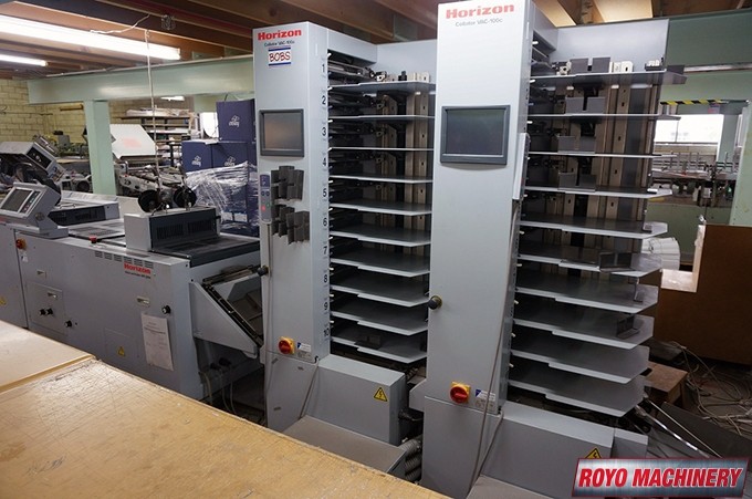 VAC 100a Collating Tower, VAC 100c Collating Tower, Two towers, Stitcher-Folder SPF-200A, PJ-77R jogger, Min. Paper size: 4.75 x 5.8", Max. Paper size: 14" x 20", FC-200A trimmer, 7560 sets per hour - 20 bins, 9000 sets per hour - 10 bins, Air feed, 10 Bins per tower, Delivery Conveyor LC200