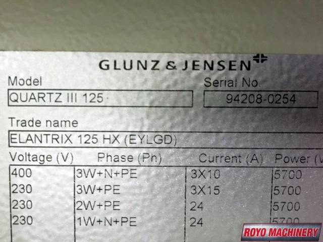 Thermal, Stacker, RIP Included, Plate thickness: .006 to .016", Min. Plate Size: 9.8 x 12.2", Max Plate Size: 40.5 x 31.5", Glunz & Jensen Elantrix 125 HX online processor, 830nm laser, 20 Plates per hour, 1200 2400 dpi, RIP: Apogee Prepress 6