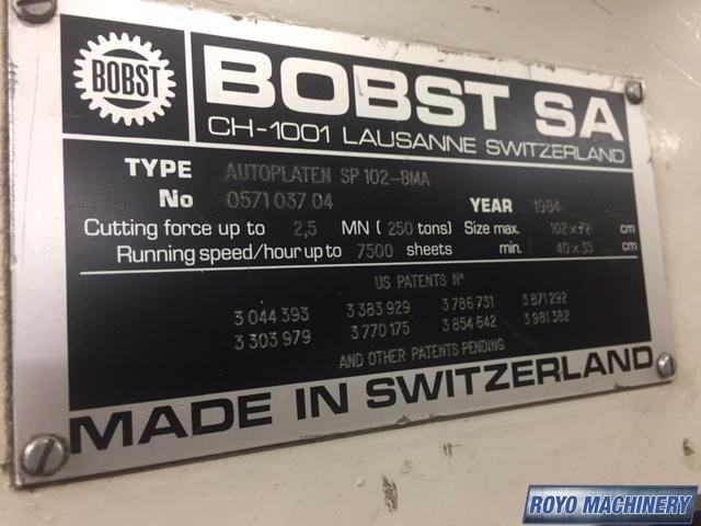 7500 sph, Micro System, Non-stop feeder and delivery, Preloading, Center line system, 250 tons of pressure, Double Action Stripping, Stripping, Non-stop delivery, Max. Blank Size: 30" x 41.75", Min. Blank Size: 350 x 400mm