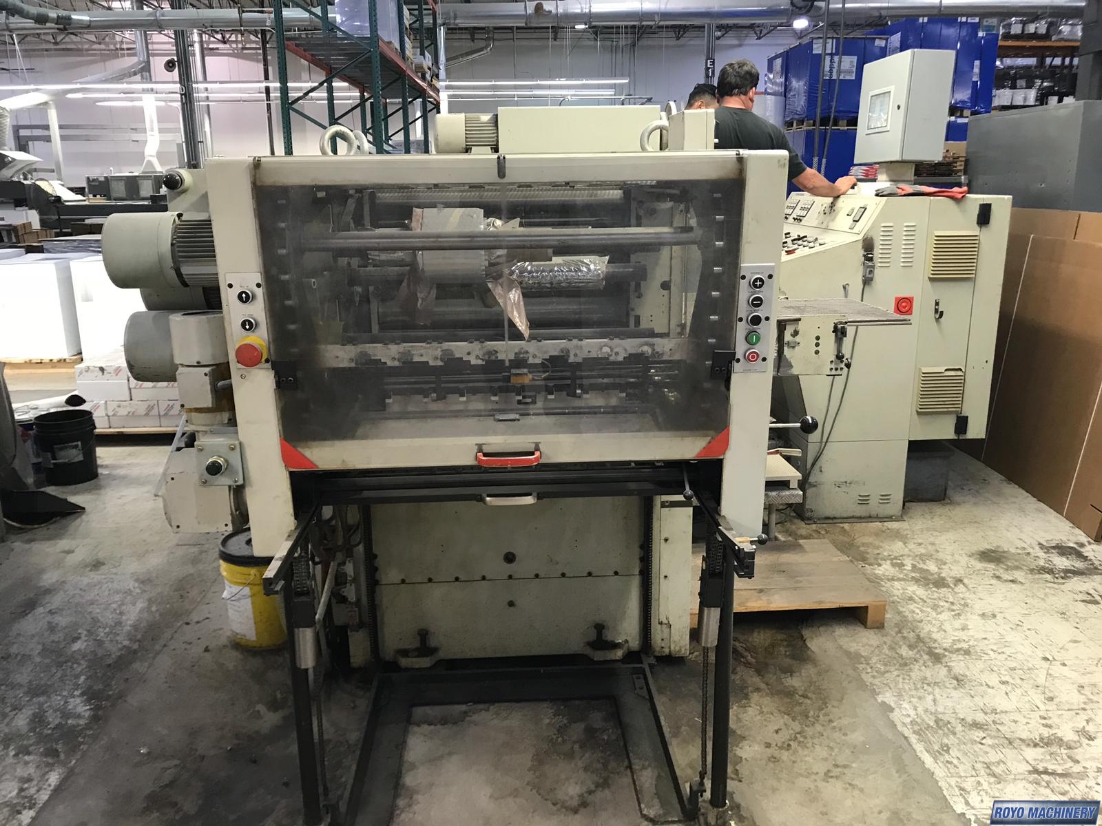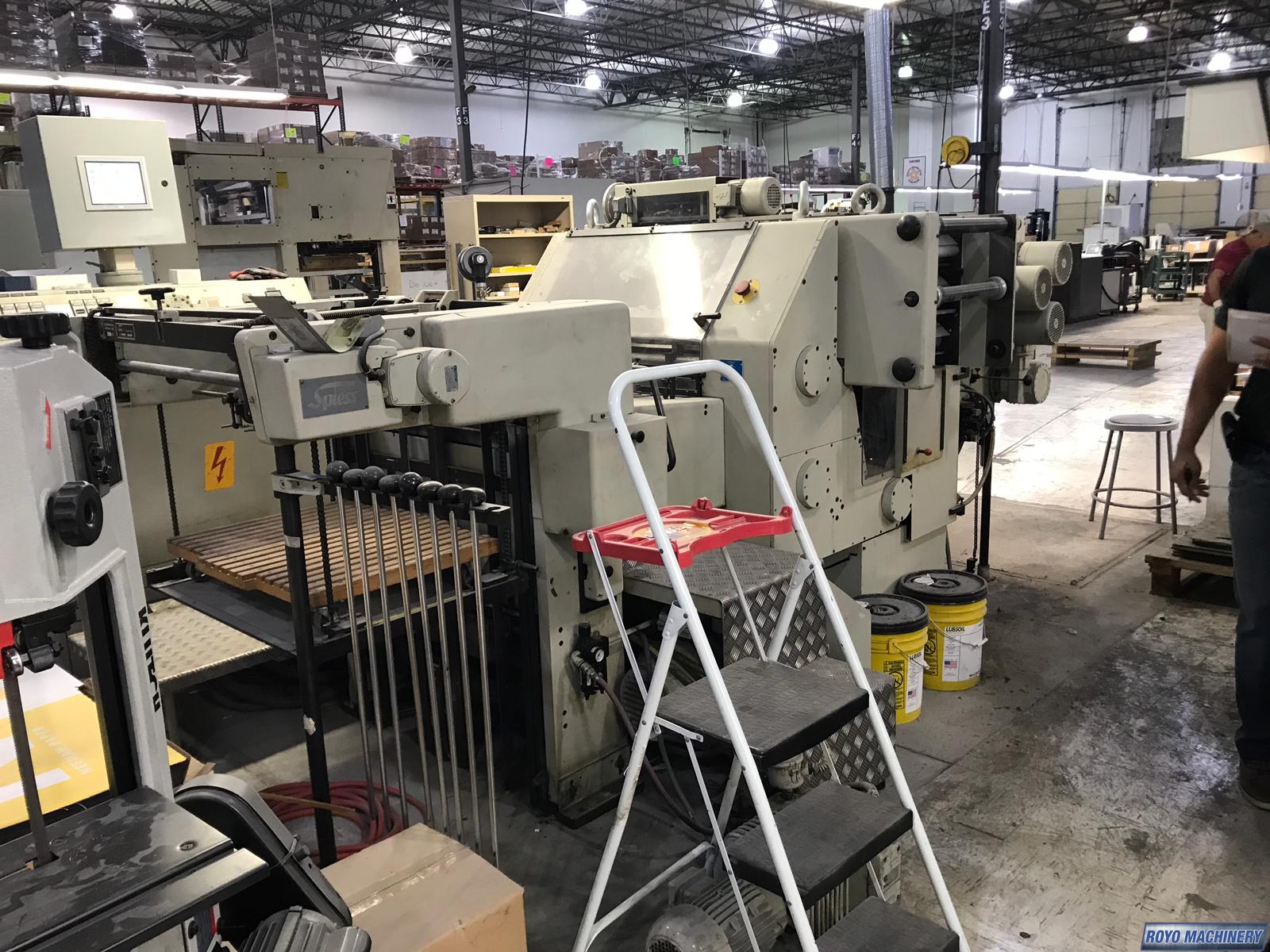 6 Heating zones, Dimensions: 4.3 x 3.6 x 1.9 m, Feeding Pile Height: 950mm, Foil feeding units: 3, Foil Stamping, Max. Die Cutting size 750 x 485mm, Max. Paper Thickness: 0.5mm, Max. Sheet Size: 720 x 520 mm, Max. Speed: 5000 sph , Maximum foil diameter: 160mm 1" core, Min. Paper size: 297 x 210mm, Programmable foil advance, Total Weight: 7.0 Tons , Total Power: 34kw