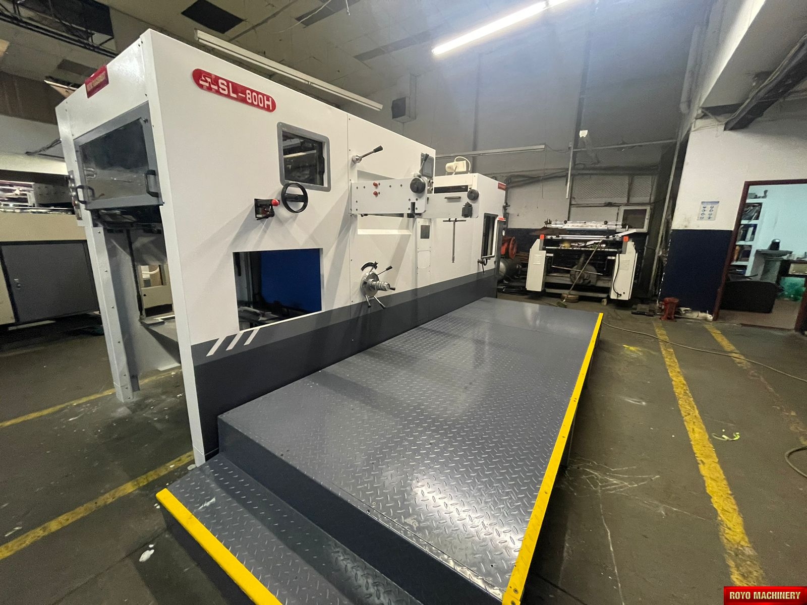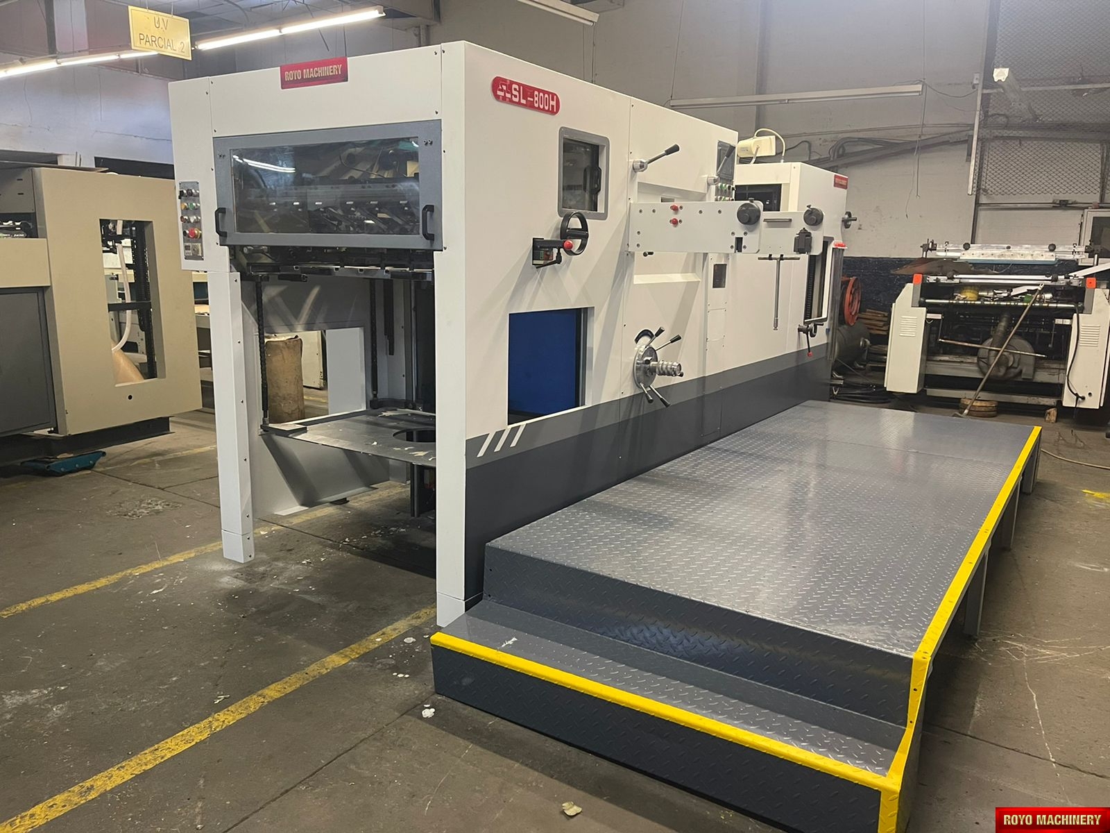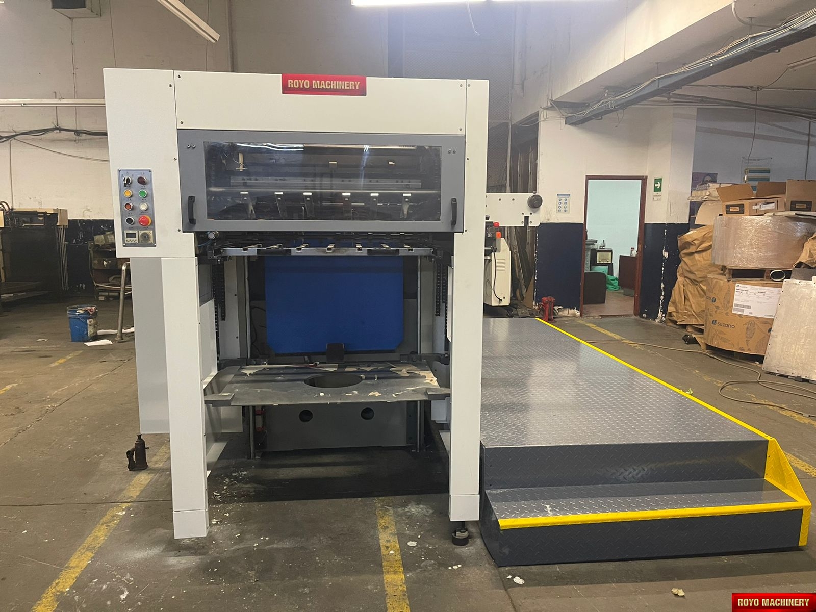 Max. die cutting size 800 x 620mm, Max. die cutting pressure: 150 Tons, Dimensions: 4290 x 2330 x 1980 mm, Paper or cardboard thickness: 100-2000 gsm, Voltage: 220V 3PH 60Hz, Total Weight: 10 Tons, Total Power: 13kw, Corrugated board up to 2mm, Die cutting Precision: +/- 0.15mm, Central lubrication with auto pump , Delivery Pile Height: 1030mm, Pre-loader, Max. Speed: 8500 strokes per hour, CE Standard Machine, Automatic pressure adjustment