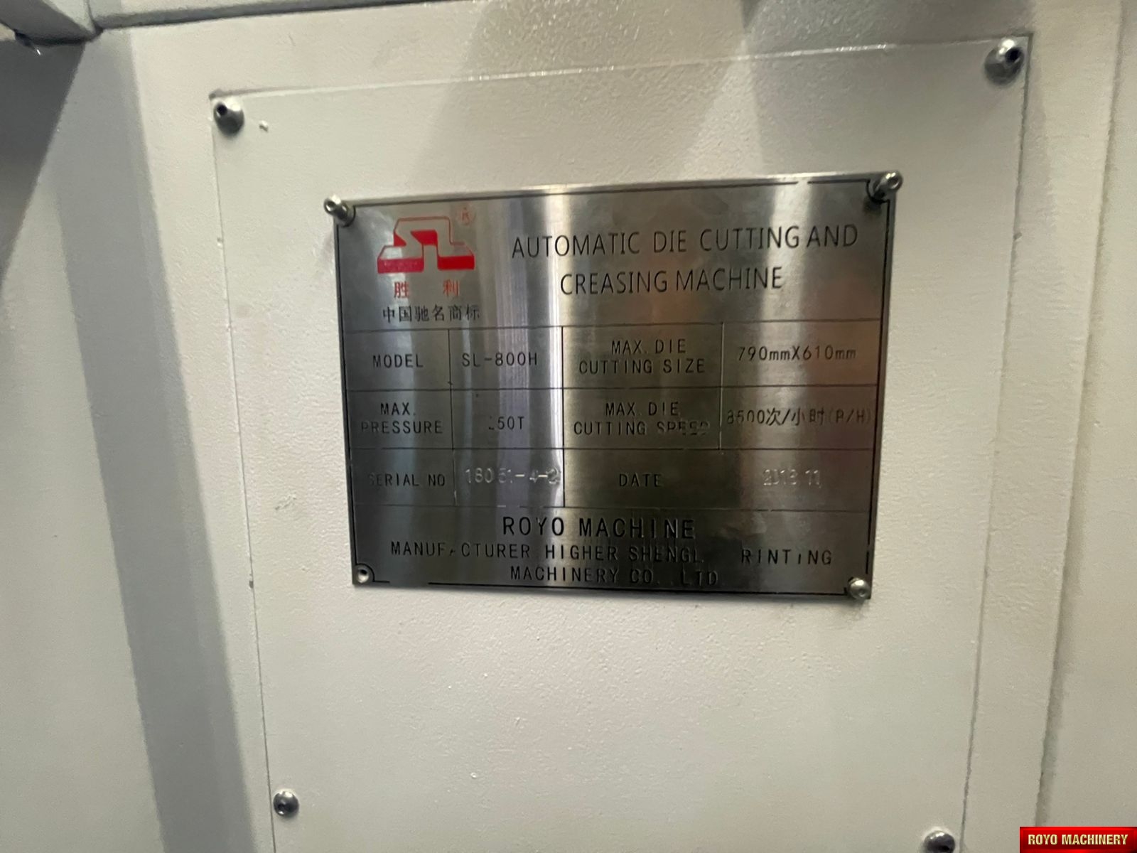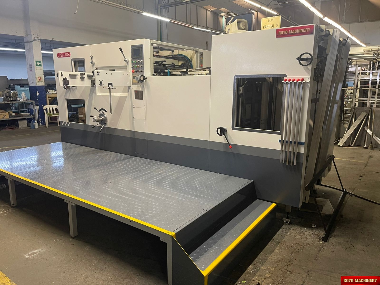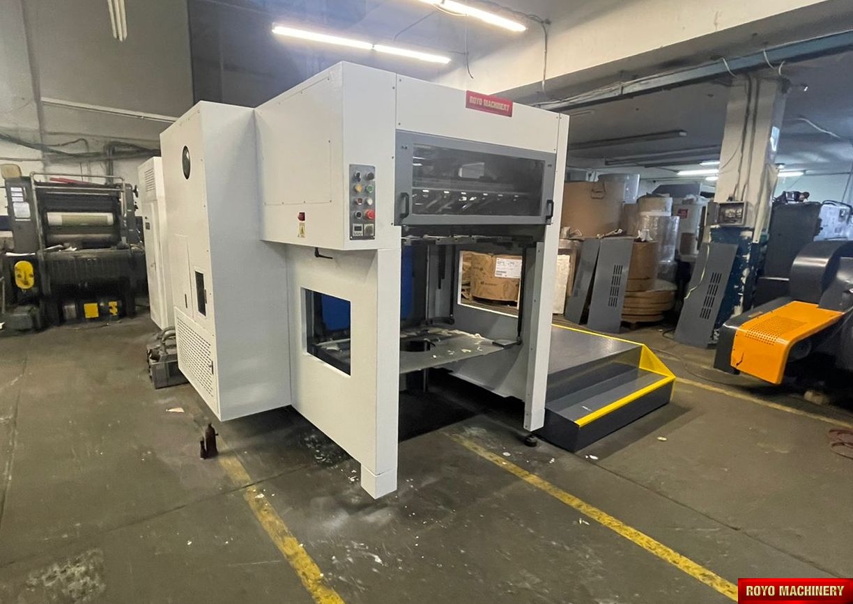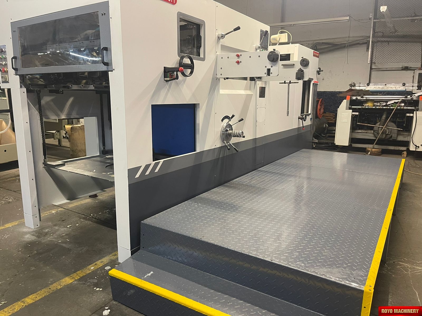 Max. die cutting size 800 x 620mm, Max. die cutting pressure: 150 Tons, Dimensions: 4290 x 2330 x 1980 mm, Paper or cardboard thickness: 100-2000 gsm, Voltage: 220V 3PH 60Hz, Total Weight: 10 Tons, Total Power: 13kw, Corrugated board up to 2mm, Die cutting Precision: +/- 0.15mm, Central lubrication with auto pump , Delivery Pile Height: 1030mm, Pre-loader, Max. Speed: 8500 strokes per hour, CE Standard Machine, Automatic pressure adjustment