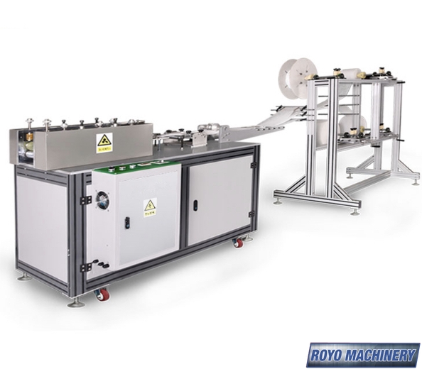 Total Weight: 1.5 Tons, Total Power: 10kw, Sealing Ultrasonic Frequency: 20KHZ, Production Capacity: 120-150 Pieces per min, Nonwovens fabric White + Blue + Melt blown Microfiber, Moldable steel/plastic nose-clip, Ear-loop Material: Terylene or similar, Mask Layers: 2-4 layers, Elastic band ear-loop, Dimensions: 6500 x 4500 x 2000 mm, Mask Size: 175 x 95 mm (Customizable), White Nonwoven: Roll Size 20cm Width x 60cm Diameter, Suggested Materials: 3 Layers: 28GSM PP + 20GSM MB + 20GSM PP, Nose Clip: White recovered steel 5mm x 80 cm length , Melt Blown Microfiber: Roll size 17.5cm width x 60cm diameter, Elastic Band Ear-Loop: 3mm round, Blue Nonwoven Fabric: Roll size 17.5cm width x 60cm diameter