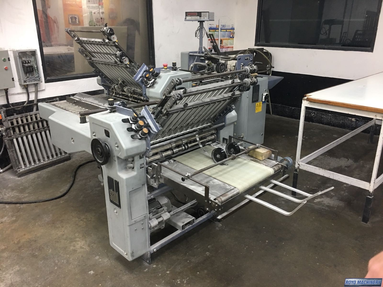 Combo rollers, 2nd Unit - 4 Plate folds, Quick set, Air feed, Belt delivery, Pile feeder, Counter, Parallel Section, 1st Unit - 4 plate folds