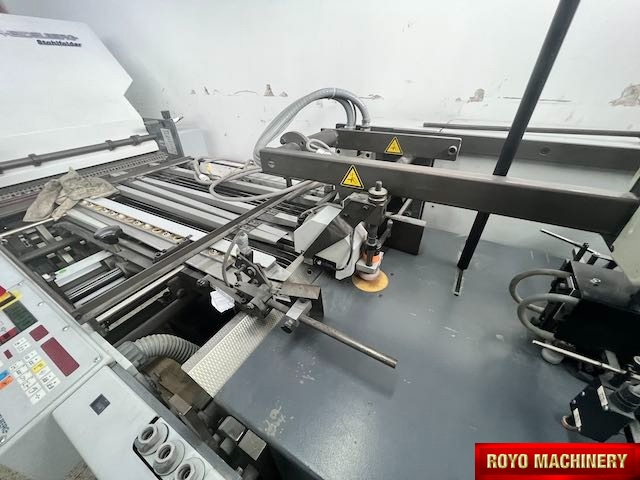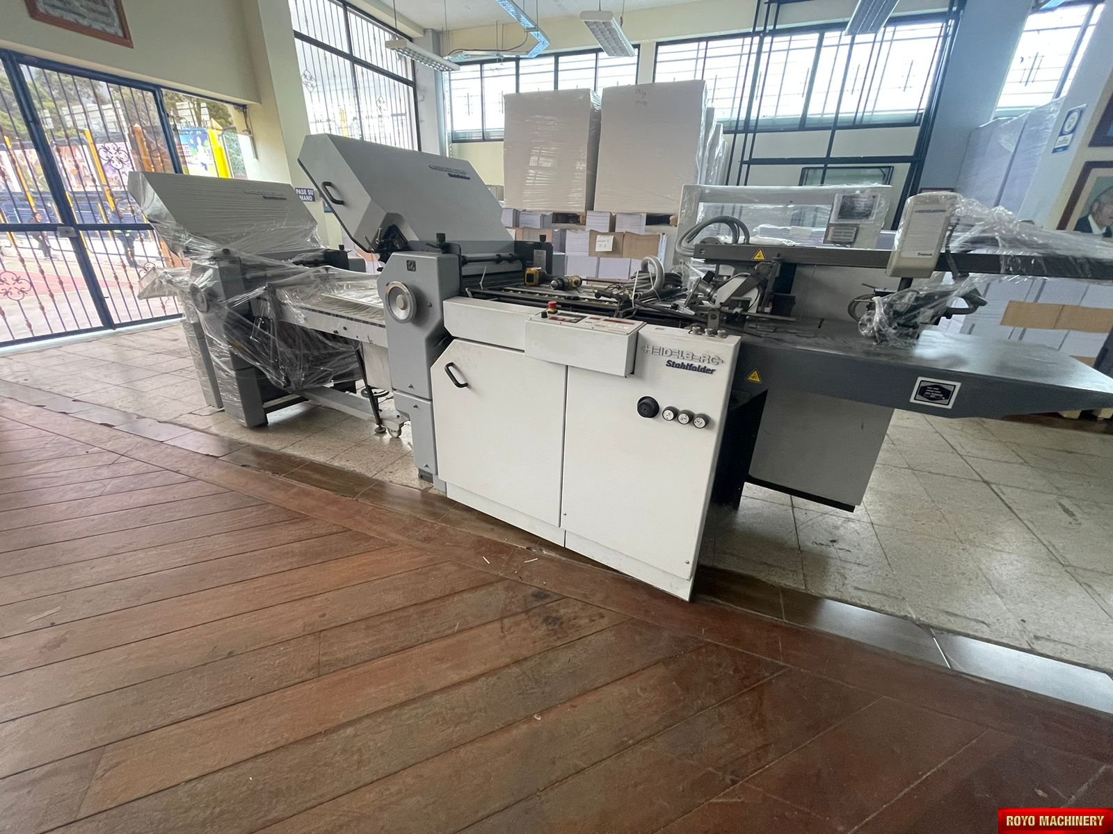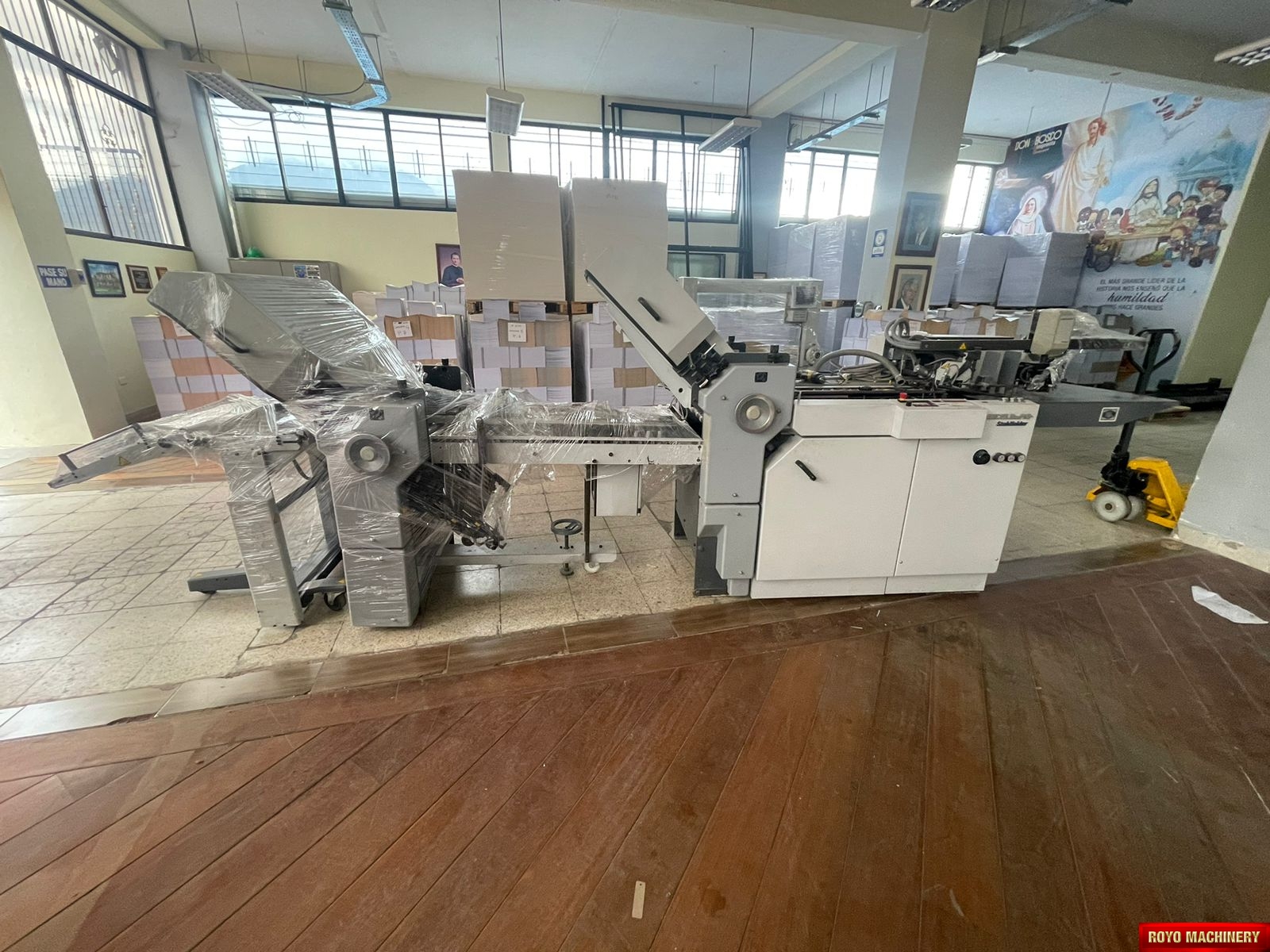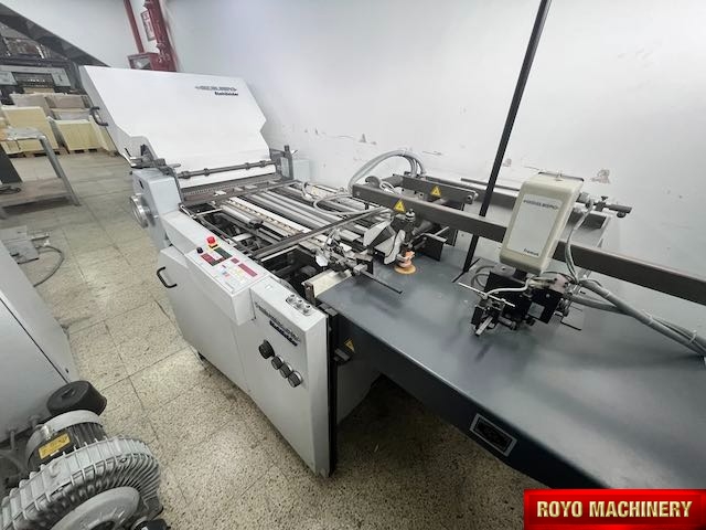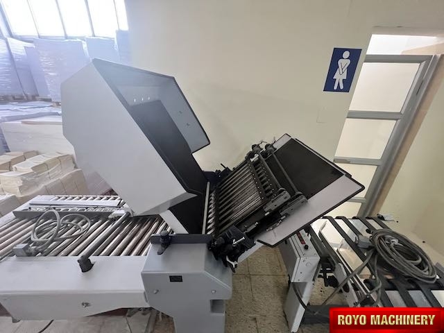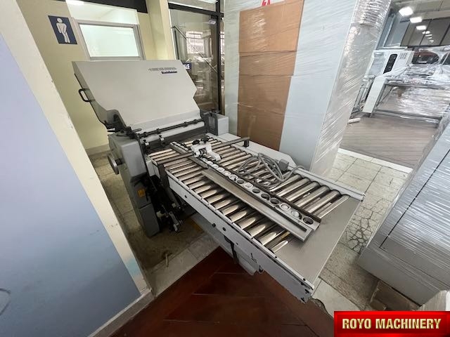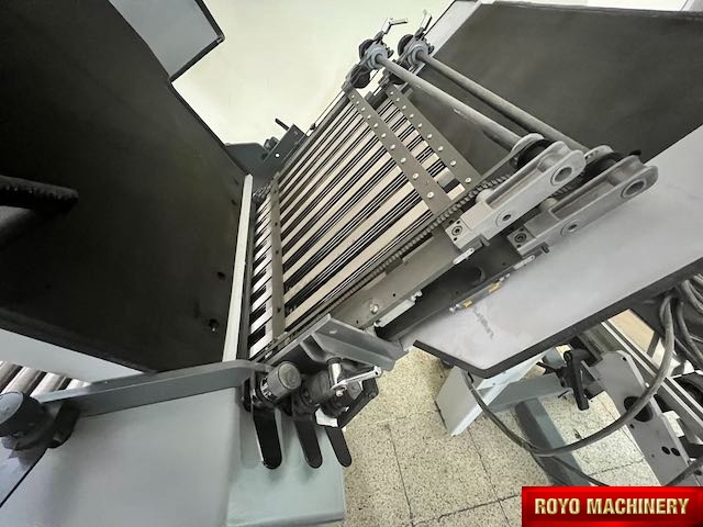 Pre-slitter shaft, Pile feeder, Noise hoods on all stations, Counter, Combo rollers, Belt delivery, Air feed, 2nd Unit - 4 Plate folds, 1st Unit - 4 plate folds, 16 Page Section, 1 right angle, Quick Set, Slit/Score/Perforate in parallel section, Zero Speed Folding Plate Deflectors