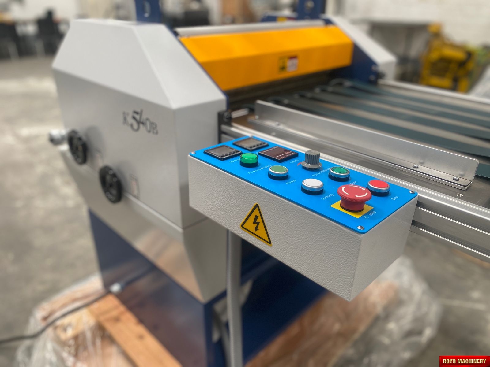 Max. Paper Width: 540mm, Dimensions: 1270 x 970 x 1400 mm, Paper thickness: 105-500 gsm, Laminating Speed: 0-15m/min, Total Weight: 230kg, Total Power: 3kw