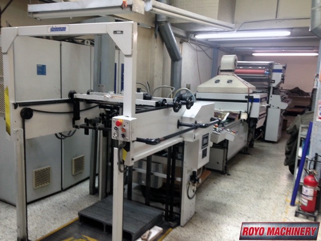 Total Power: 28kw, Paper Thickness: 70 lbs - 30 pt., Min. Paper size: 8.6" x 11.9", Max. Paper Size: 40.1" x 55.9", Mabeg Feeder, Laminating Speed: Up to 100m/min, Vacuum sheet cleaning system, Steinemann hot knife, Sheet stacker, Sheet prepiling, Rotary sheet cleaning brush, Rest film winder, Laminating unit with film unwinding, Heatable calender
