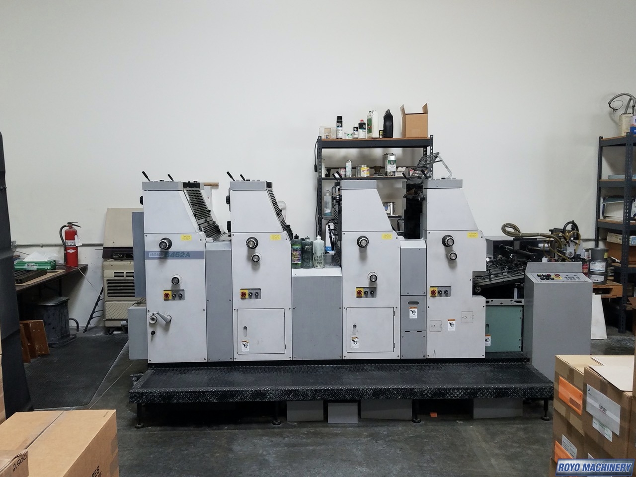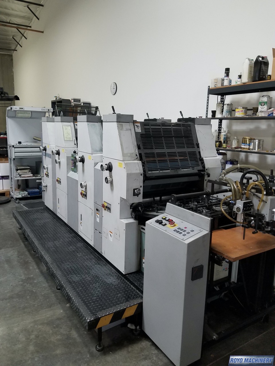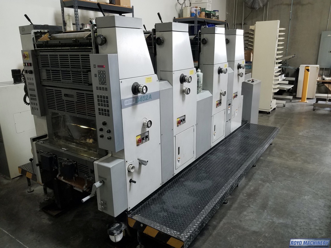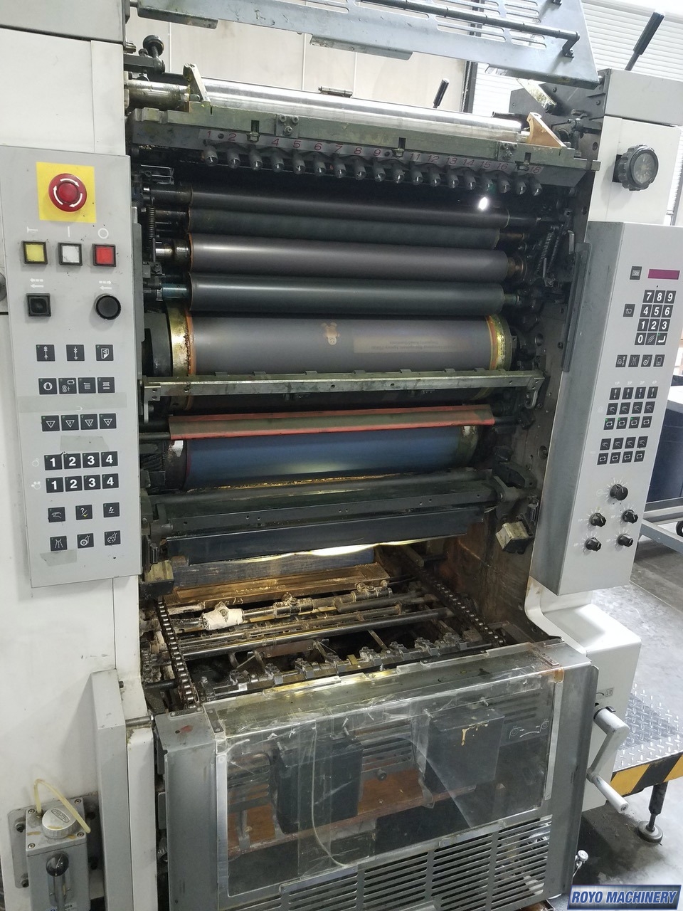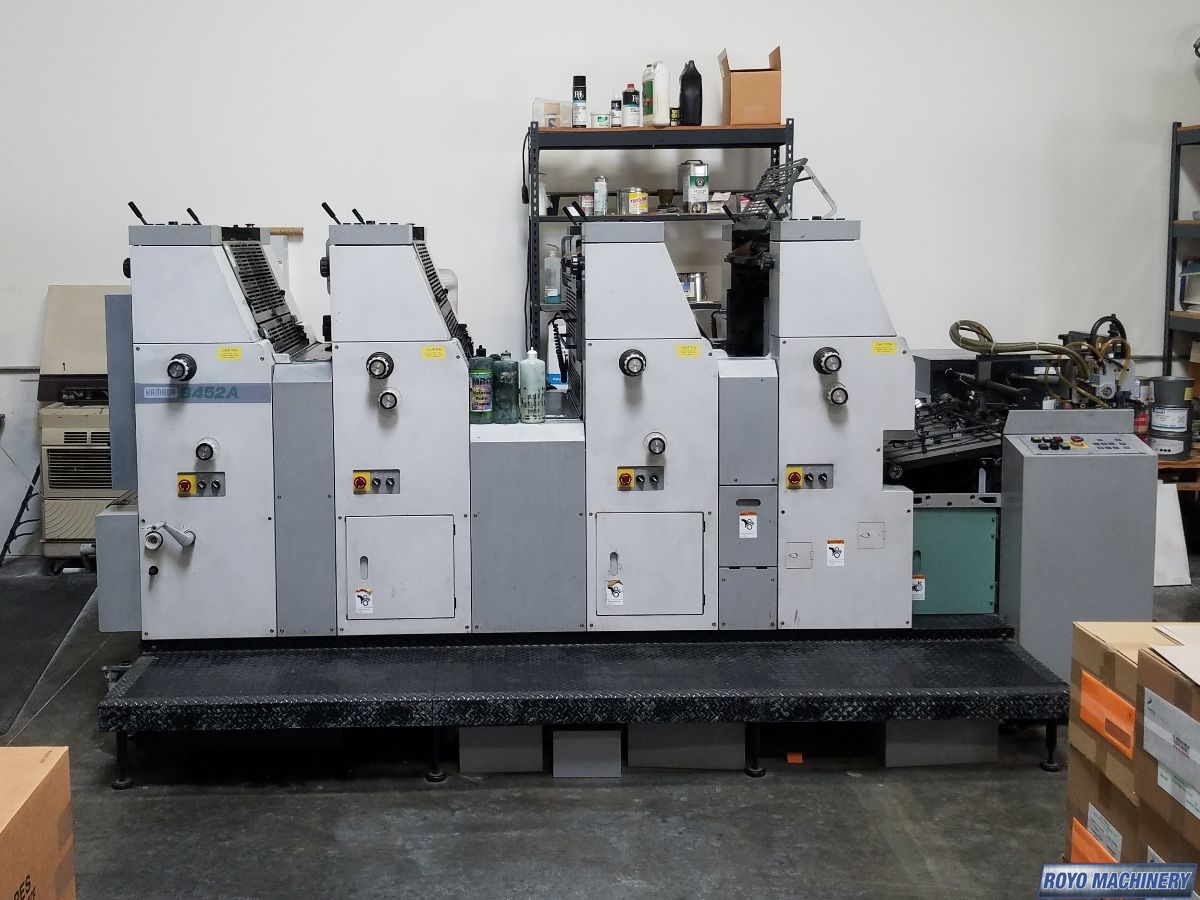 Stream feeder, Royse Refrigerated Recirculator, Hamadamatic Dampening, Double sheet detector, Chain delivery, Autoplate, Automatic Blanket and Roller Washer, 10000 sph