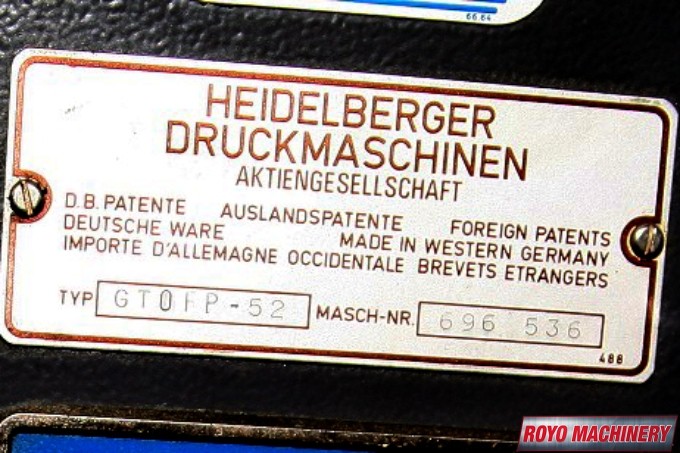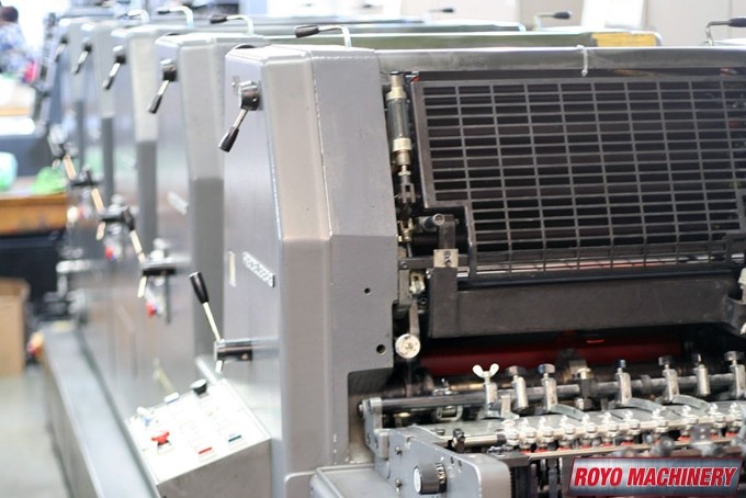 Single Sheet Feeder, Powder Spray, Low pile delivery, Double sheet detector, Baldwin Refrigerated Recirculator, Bacher pin register on clamps, Quick action plate clamps, 8000 sph, Alcolor Dampening