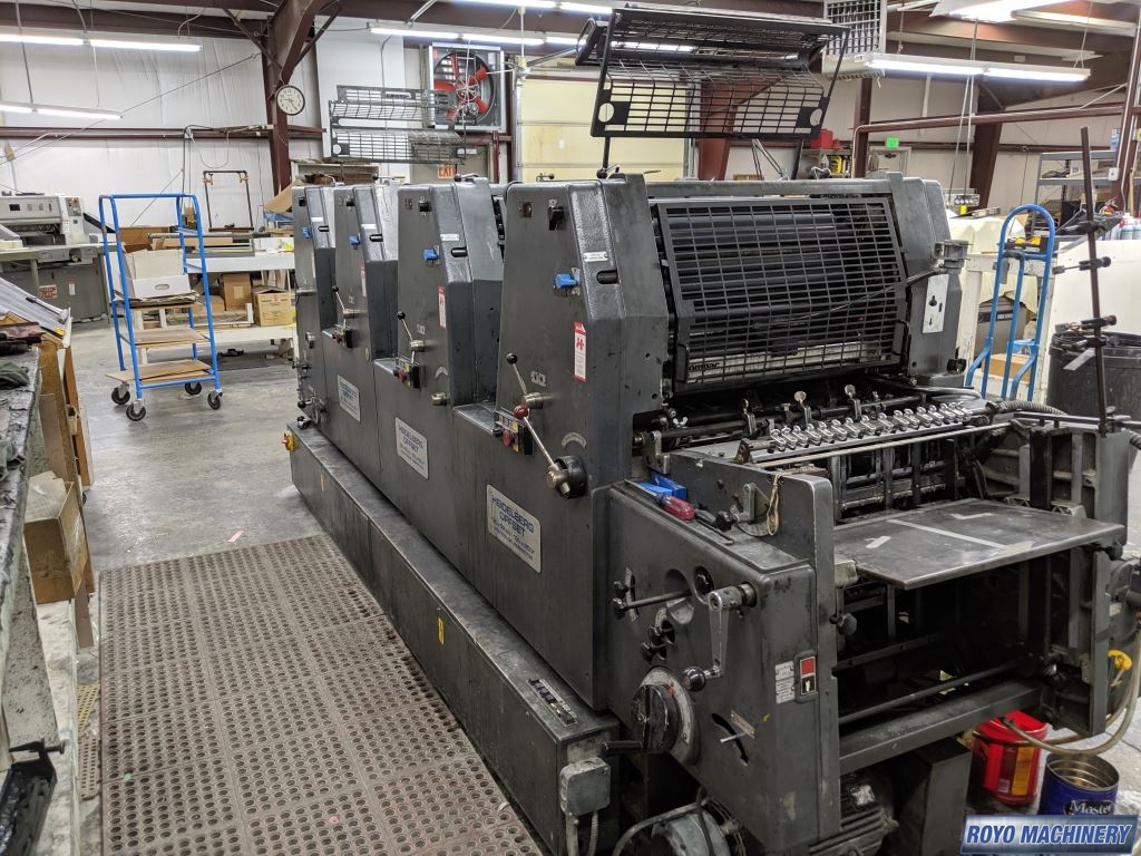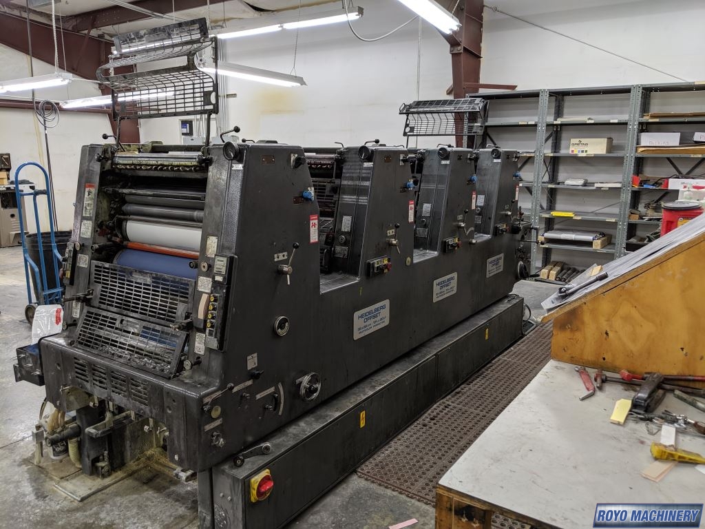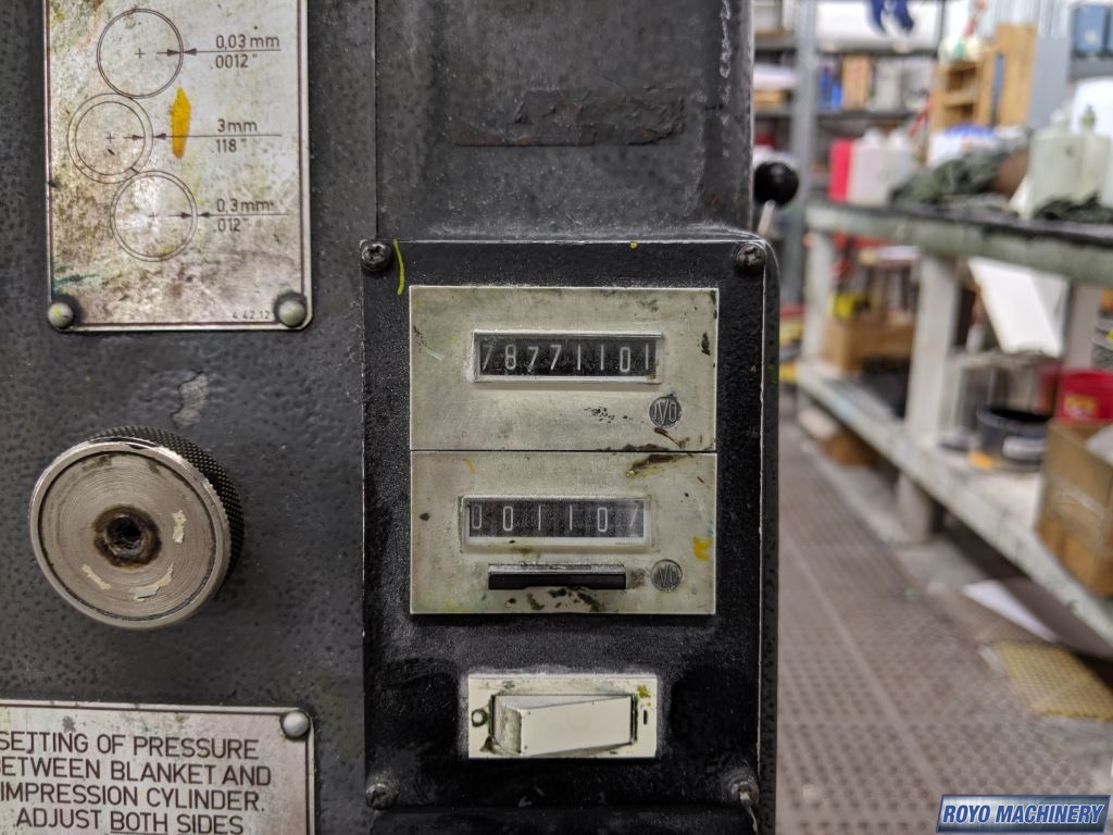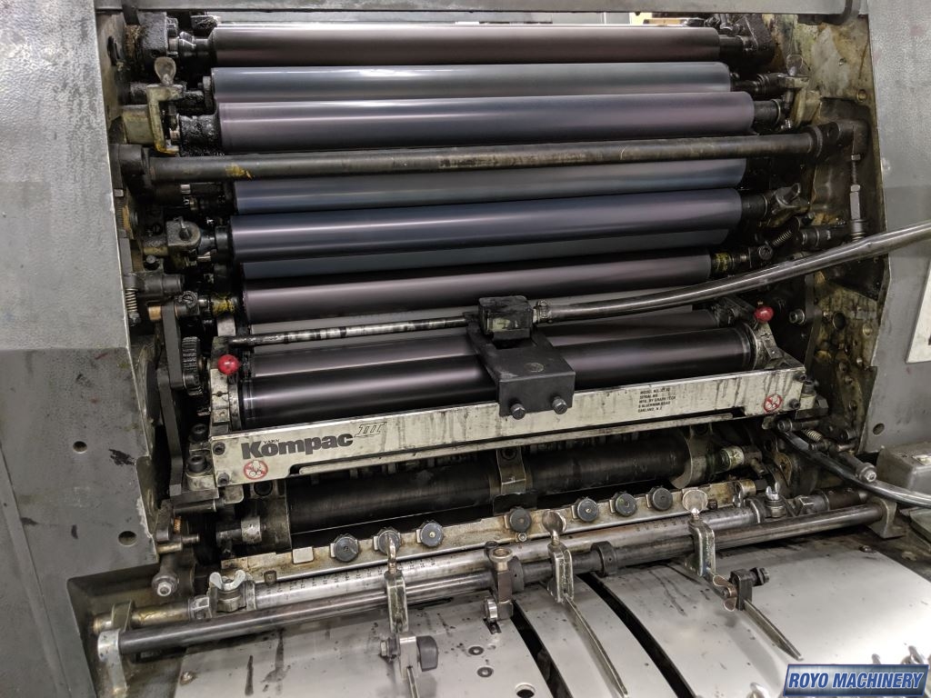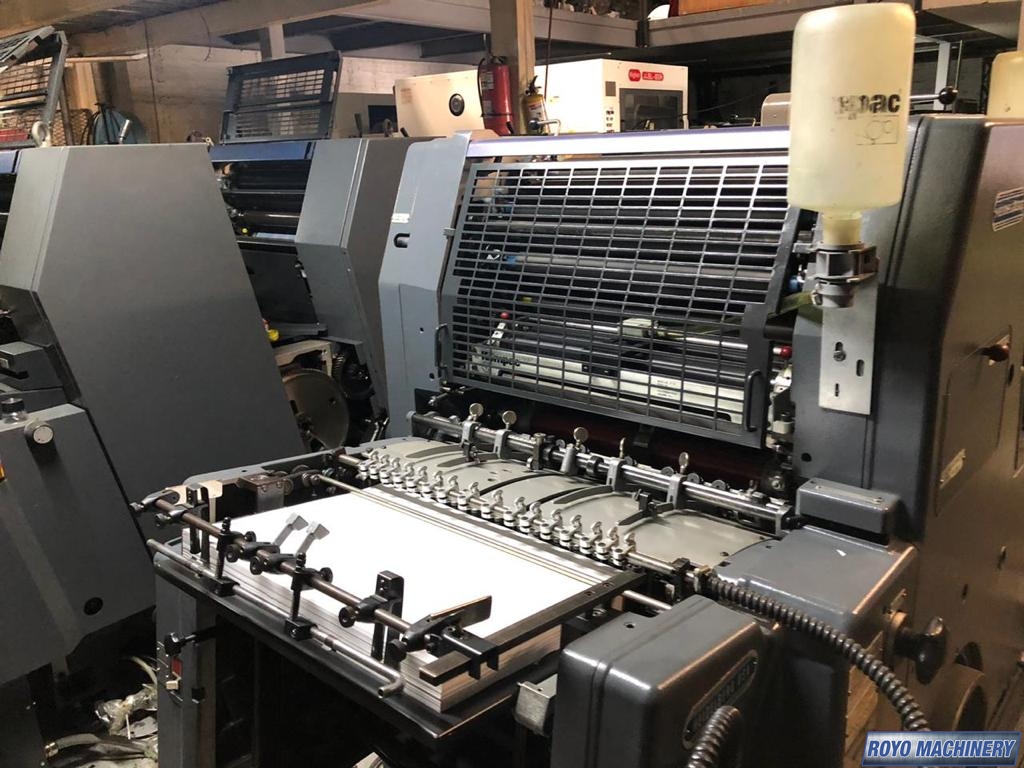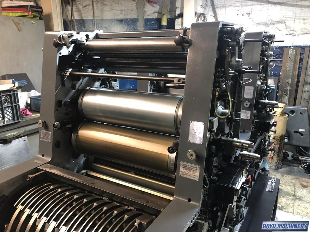 Single Sheet Feeder, Gearing for N&P, Quick action plate clamps, Weko powder spray, Low pile delivery, Double sheet detector, Bacher pin register on clamps, Plus Version, 8000 sph, Kompac Dampening