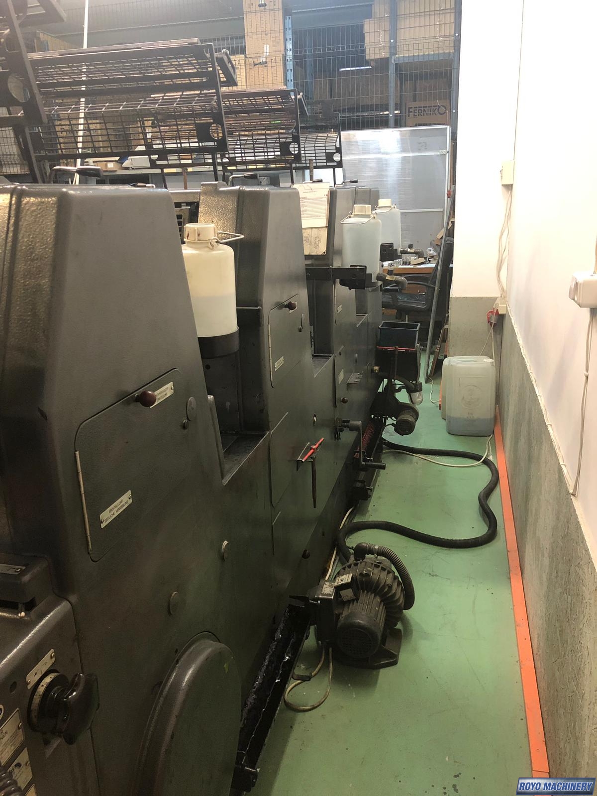 Single Sheet Feeder, Quick action plate clamps, Conventional dampening, Low pile delivery, Double sheet detector, Bacher pin register on clamps, Refrigerated Recirculator, 8000 sph, Powder Spray, Plus Version, Gearing for N&P, Chain delivery