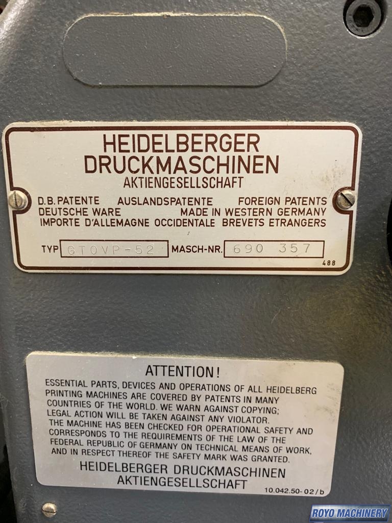 Used Offset Press Heidelberg GTO V 52