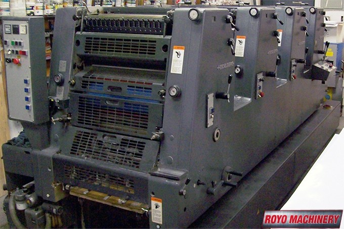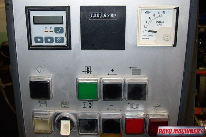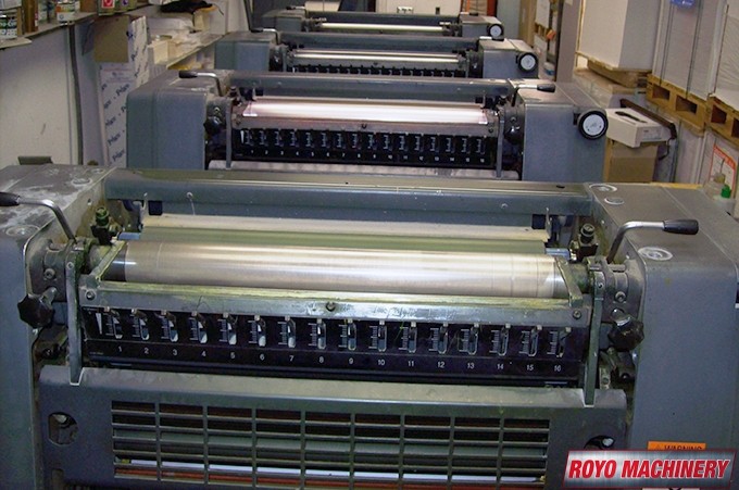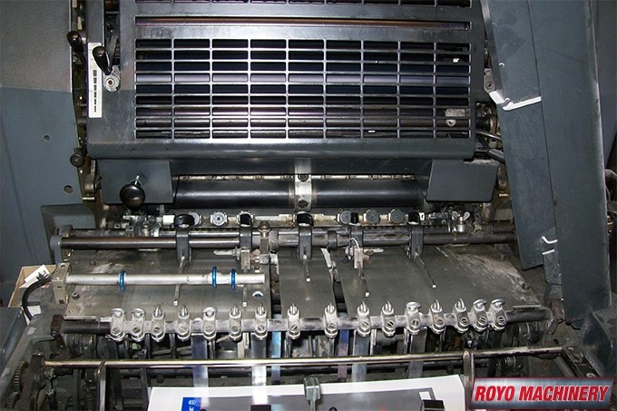 Single Sheet Feeder, Segmented ink blades, Royse Refrigerated Recirculator, Quick action plate clamps, Powder Spray, Low pile delivery, Double sheet detector, DDS Dampening, Bacher pin register on clamps, 8000 sph