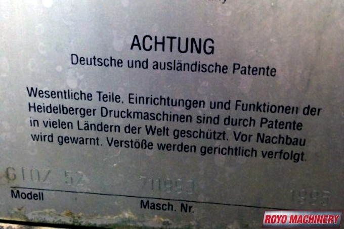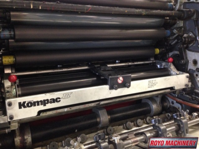 Single Sheet Feeder, Quick action plate clamps, Powder Spray, Plus Version, Low pile delivery, Double sheet detector, Bacher pin register on clamps, Kompac Dampening, 8000 sph