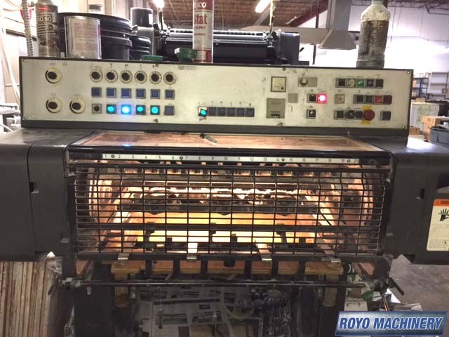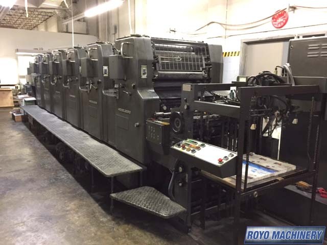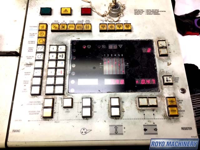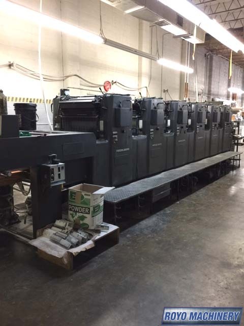 Grafix powder spray, Non-stop delivery, IR Dryer, High pile delivery, Double sheet detector, CPC 1.02, Bacher pin register on clamps, Alcolor Dampening, Quick action plate clamps, Chrome Impression Cylinder, 12000 sph, Royse Refrigerated Recirculator