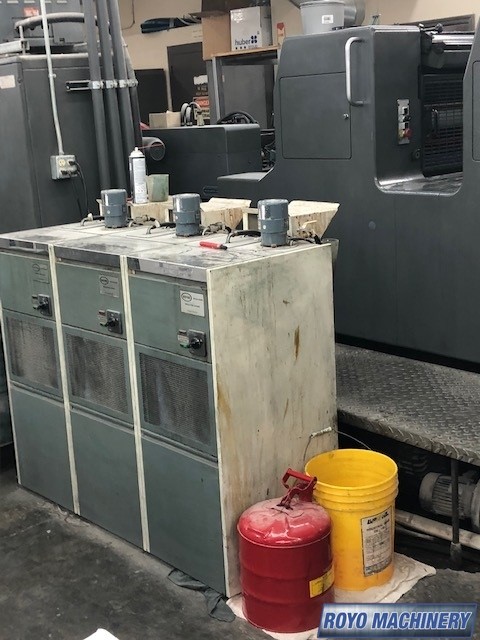 Royse Refrigerated Recirculator, Non-stop delivery, IR Dryer, High pile delivery, Superblues, Double sheet detector, CPTronic, CPC 1.03, Bacher pin register on clamps, Automatic Blanket Wash, Alcolor Dampening, Quick action plate clamps, Preset, Powder Spray, 13000 sph