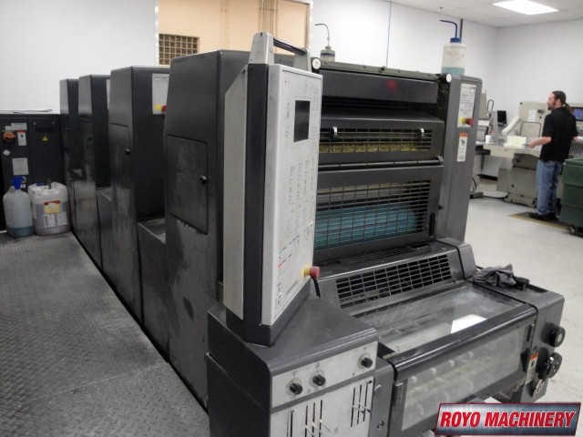 Suction Tape on Feeder, Stream Feeder, Sheet Decurler, Mediprint Spray Powder Unit, Low pile delivery, Easy Plate, Double sheet detector, Classic center, Baldwin Refrigerated Recirculator, Bacher pin register on clamps, Alcolor Dampening, 13000 sph, Diagonal Register, Automatic Blanket and Roller Washer
