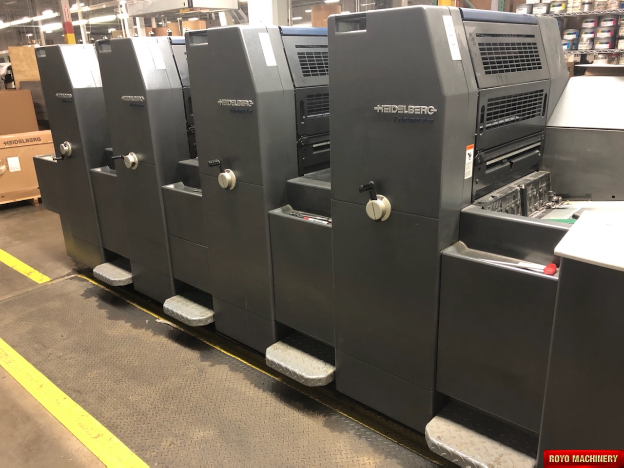 Stream Feeder, Suction Tape on Feeder, Low pile delivery, Double sheet detector, Technotrans Refrigerated Recirculator, Bacher pin register on clamps, Sheet Decurler, Alcolor Dampening, Electronic sidelay control, Autoplate, Like new condition, Diagonal Register, Chain delivery, 13000 sph, Light pen & smart card reader, Preset Feeder, Mediprint Spray Powder Unit, CPTronic, Classic center, Baldwin Drymaster IR, Automatic Blanket and Roller Washer