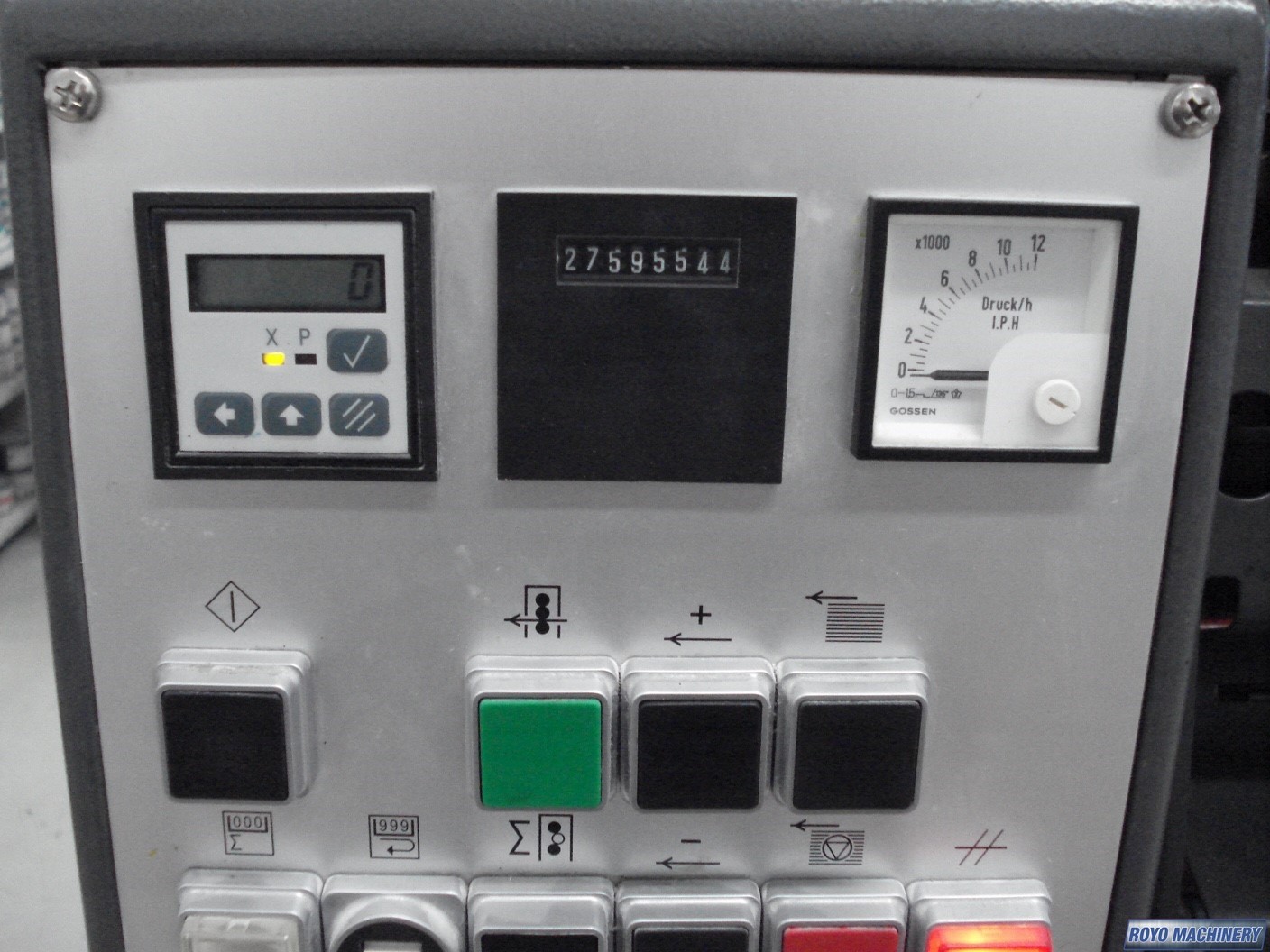 Single Sheet Feeder, Segmented ink blades, 11000 sph, Weko Powder Spray, Low pile delivery, Double sheet detector, DDS Dampening, Bacher pin register on clamps, Refrigerated Recirculator, Quick action plate clamps, Like new condition