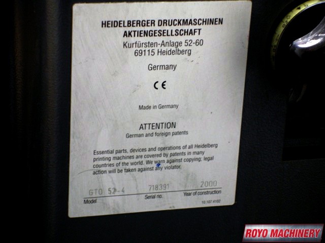 Double sheet detector, Bacher pin register on clamps, Quick action plate clamps, Segmented ink blades, IR Dryer, DDS Dampening, Low pile delivery, Powder Spray, Single Sheet Feeder, Royse Refrigerated Recirculator
