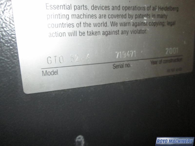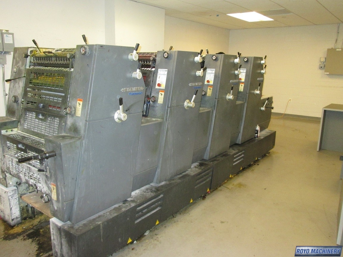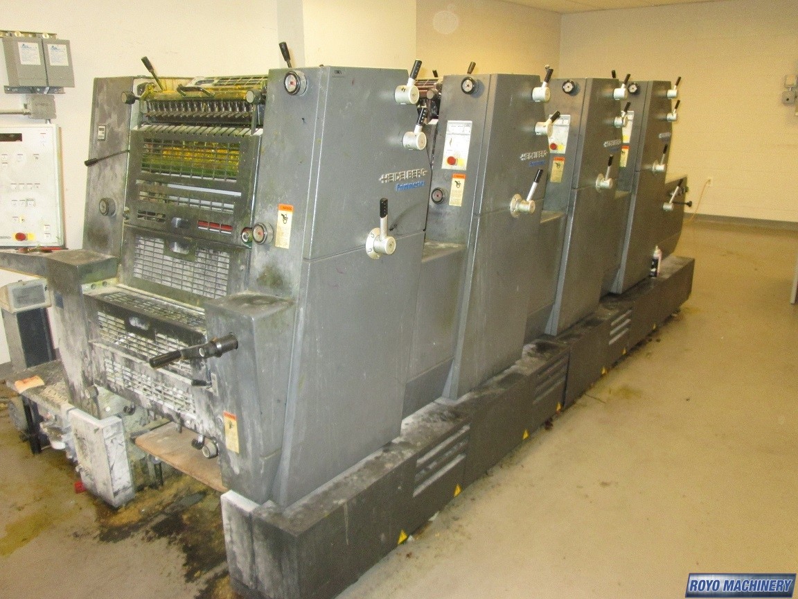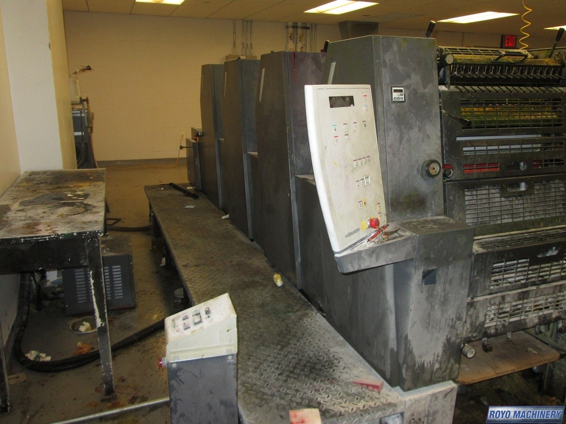 Double sheet detector, Bacher pin register on clamps, Quick action plate clamps, Segmented ink blades, IR Dryer, DDS Dampening, Low pile delivery, Powder Spray, Single Sheet Feeder, Royse Refrigerated Recirculator
