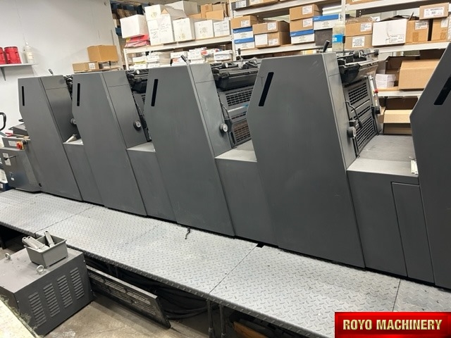 Single Sheet Feeder, Technotrans Refrigerated Recirculator, CPC 1.04, Quick action plate clamps, Powder Spray, Low pile delivery, Sheet Decurler, Double sheet detector, DDS Dampening, Bacher pin register on clamps, Chrome Plate Blanket & Impression Cylinder, Straight Machine, 9000 sph