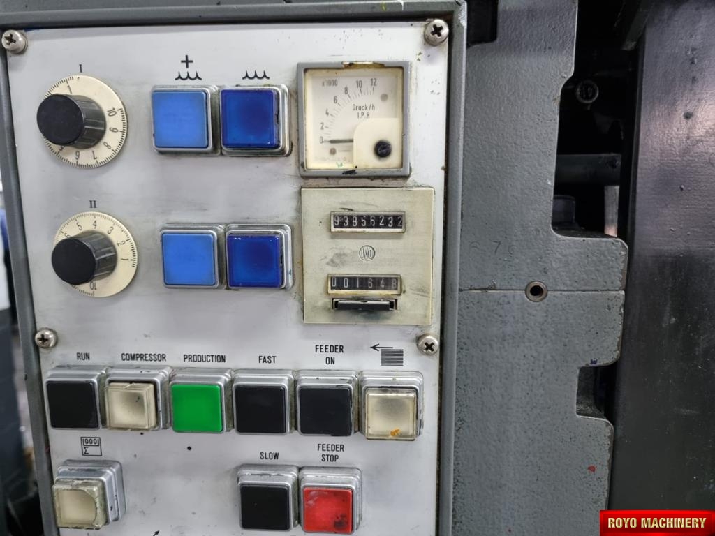 Chain delivery, Alcohol Dampening, Quick action plate clamps, Stream Feeder, Royse Refrigerated Recirculator, Powder Spray, Low pile delivery, Double sheet detector, Bacher pin register on clamps, Sheet Decurler, 11000 sph
