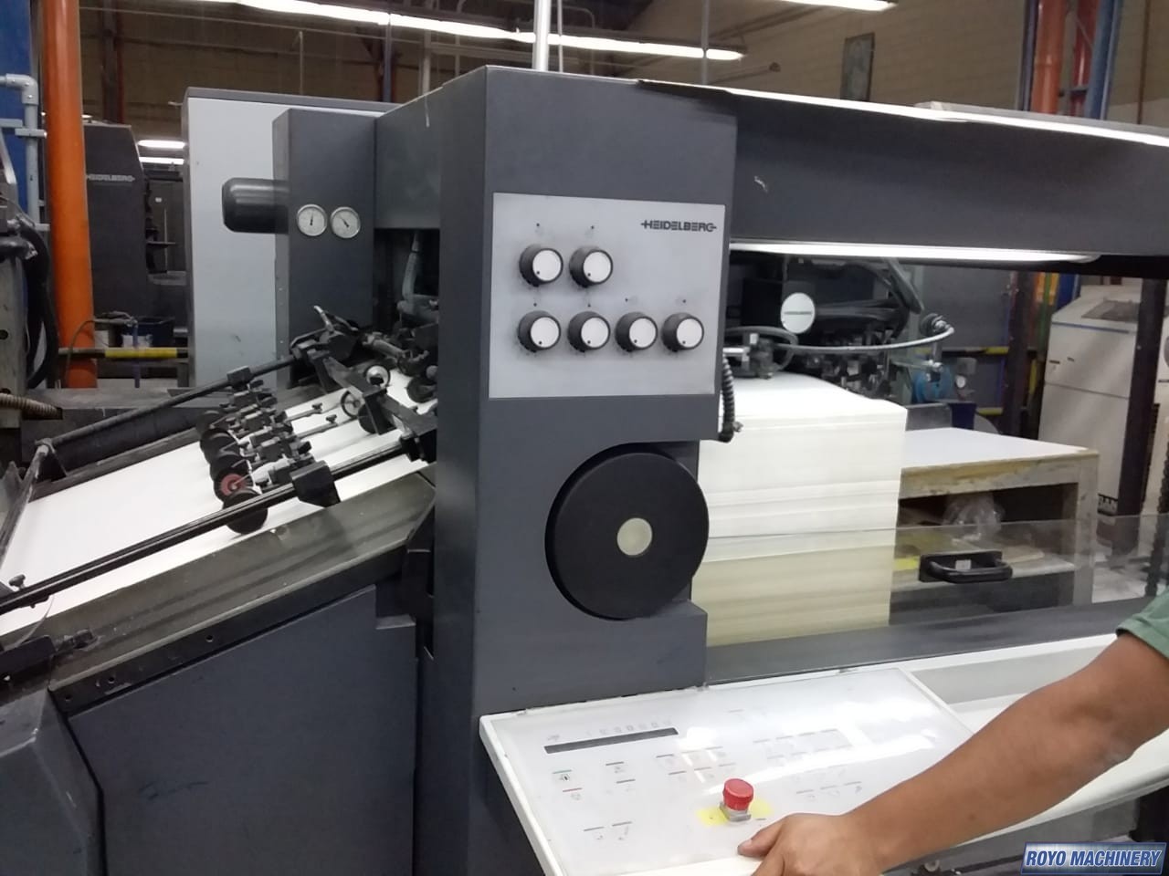 Technotrans Beta, Preset Feeder, Pre-loader, Ink temperature control, In-line coater, Grafix IR Dryer, Extended delivery, CP2000, Bacher pin register on clamps, Autoplate, Alcolor Dampening, Stream Feeder, UV Dryer, Steel plate in feeder, Steel plate in delivery, Preset, Non-stop delivery, Light pen & smart card reader, Intercom, Hot air knife, High pile delivery, Electronic sidelay control, Automatic Blanket Roller and Impression Cylinder Wash, Interdeck UV Dryer, Heidelberg CombiStar with CAN
