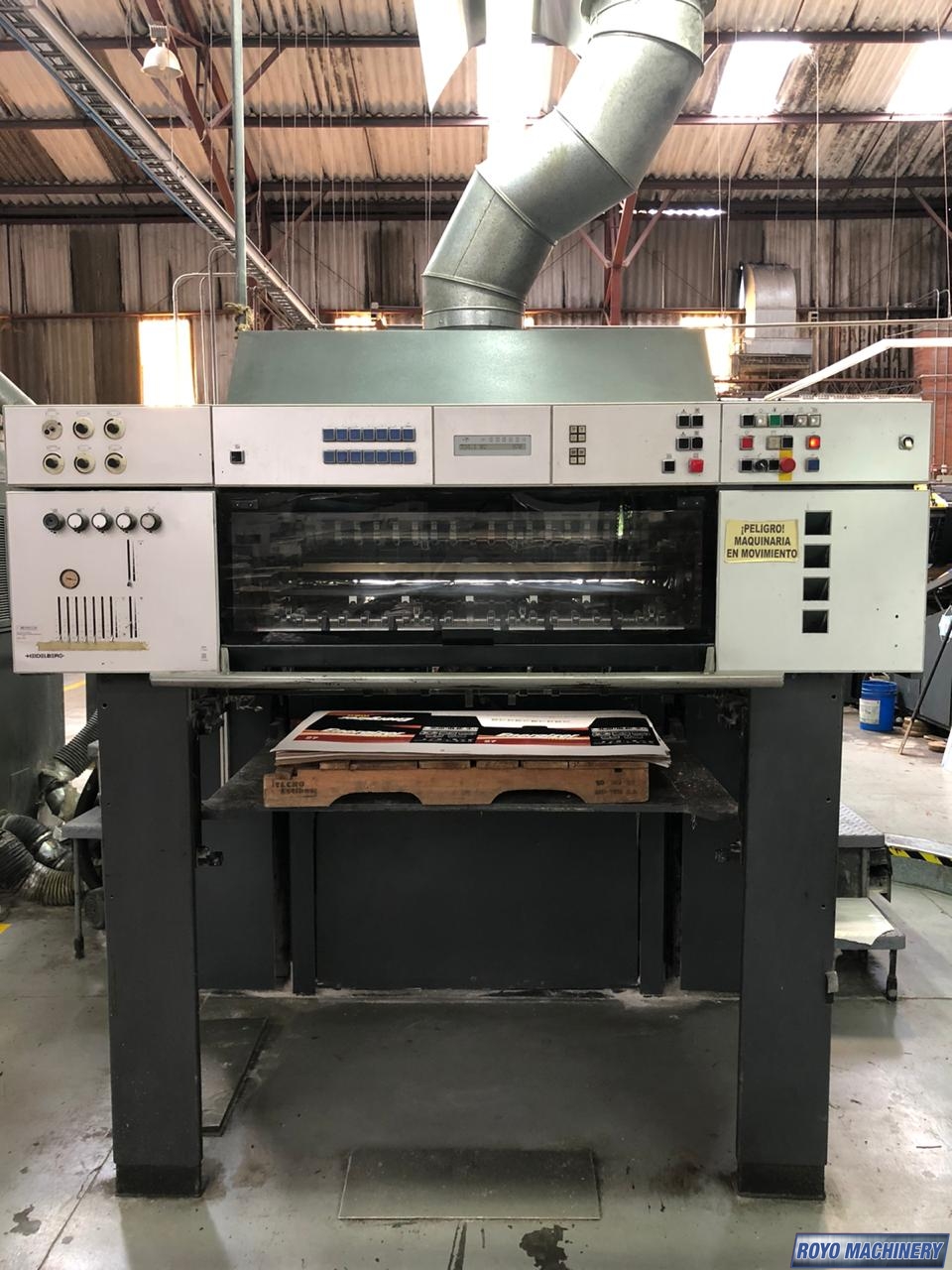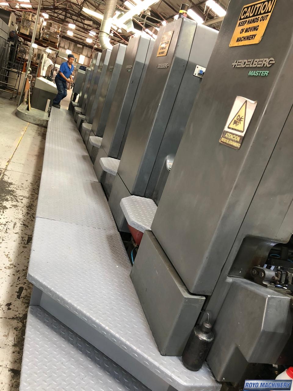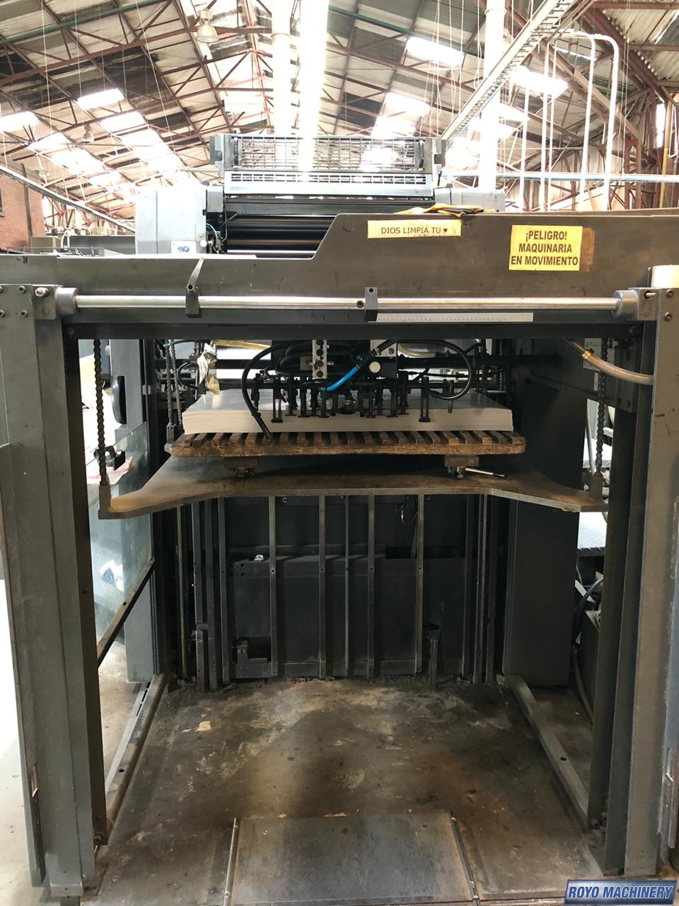 Pre-loader, Preset, Steel plate in feeder, Non-stop feeder, Non-stop delivery, In-line coater, IR Dryer, High pile delivery, Grafix Alphatronic 400 powder spray, Electronic sidelay control, Preset Feeder, Double sheet detector, Sheet Decurler, Steel plate in delivery, Royse Refrigerated Recirculator, Diagonal Register, CPTronic, CPC 1.04, Chain delivery, Autoplate, Automatic Blanket Roller and Impression Cylinder Wash, Alcolor Dampening, 15000 sph