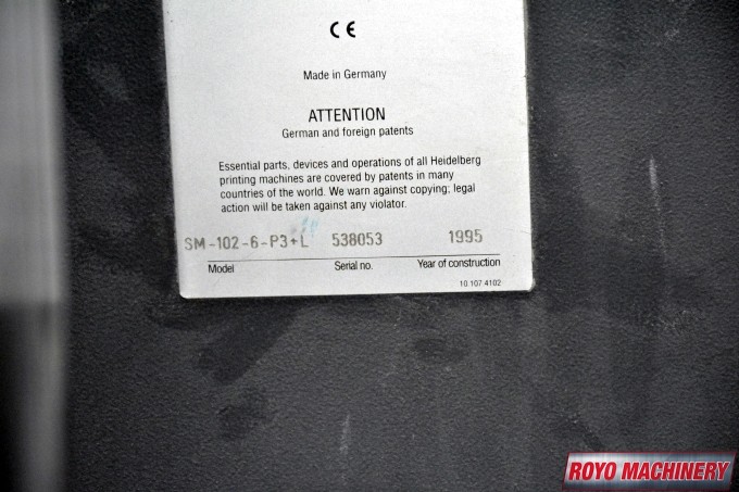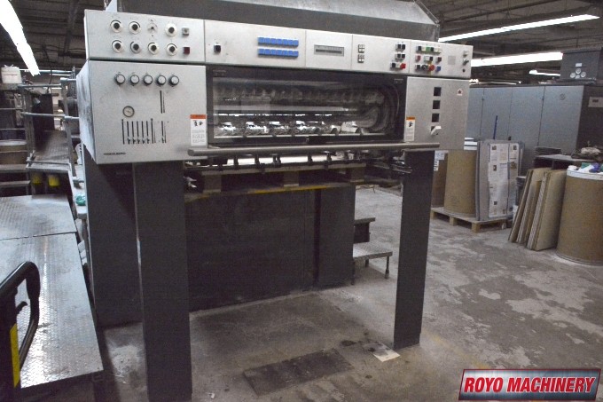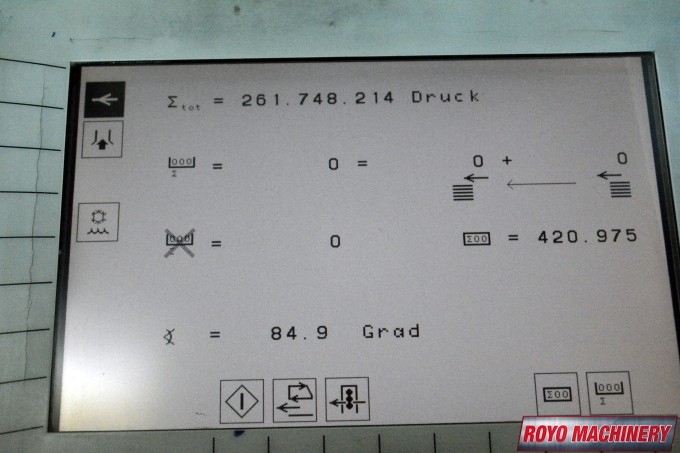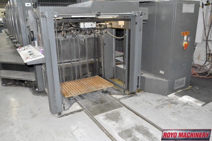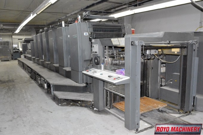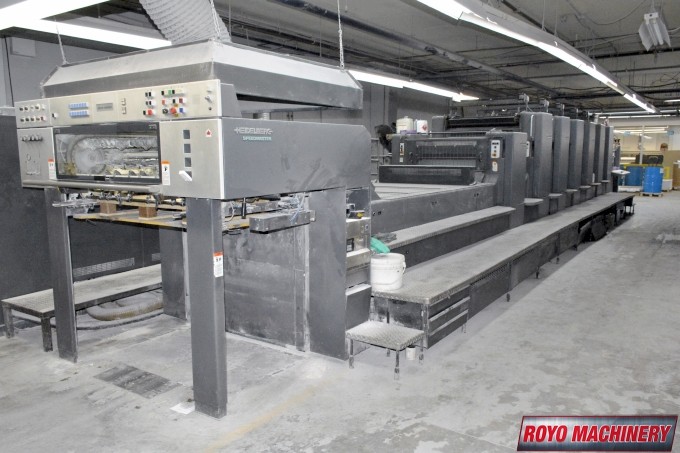 Stream Feeder, Refrigerated Recirculator, Preset, In-line coater, High pile delivery, Grafix Exatronic powder spray, Extended delivery, Double sheet detector, CPC 1.04, Bacher pin register on clamps, Autoplate, Automatic Blanket and Roller Washer, Alcolor Vario Dampening, AirStar, 13000 sph, Steel plate in feeder, Pre-loader, Steel plate in delivery