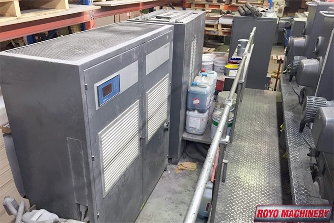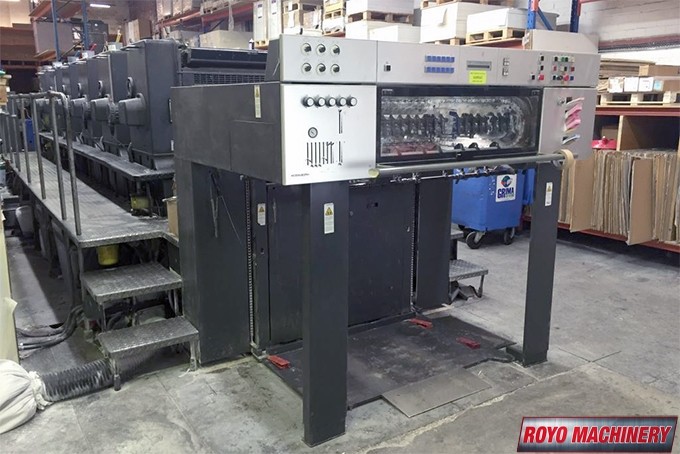 Technotrans Combistar, Superblues, Stream Feeder, Steel plate in feeder, Steel plate in delivery, Preset Feeder, High pile delivery, Heidelberg AirStar, Grafix Exatronic powder spray, Eltex antistatic equipment on feeder, Eltex antistatic equipment in delivery, Double sheet detector, Diagonal Register, CPTronic, CPC 1.04, Bacher pin register on clamps, Autoplate, Automatic Blanket and Roller Washer, Alcolor Vario Dampening, 13000 sph