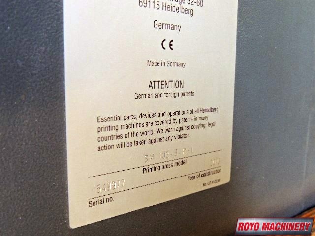 Weko AP 500 Duo Powder Spray, Suction Tape on Feeder, Stream Feeder, Steel plate in feeder, Steel plate in delivery, Preset Plus Feeder, Preset Plus Delivery, Preset, Pre-loader, In-line coater, High pile delivery, Heidelberg StaticStar, Heidelberg DryStar IR Dryer, Heidelberg Combistar Beta C, Heidelberg CleanStar, Extended delivery, Double sheet detector, Diagonal Register, CP2000, Coater with Anilox roller, Chrome Blanket Cylinders, Bacher pin register on clamps, Axis control, Autoplate, Automatic ink roller wash, Alcosmart, Alcolor Dampening, 12000 sph