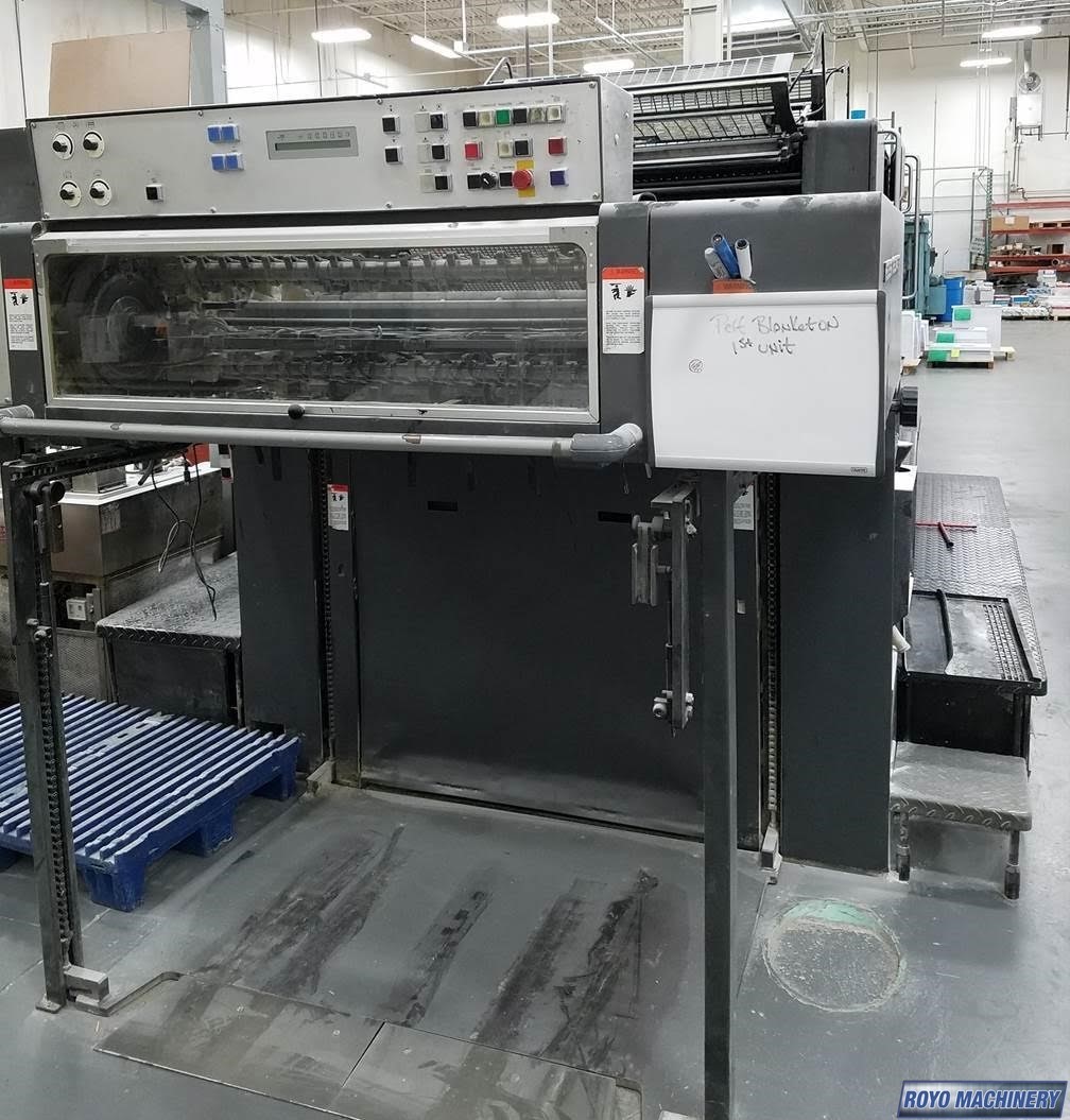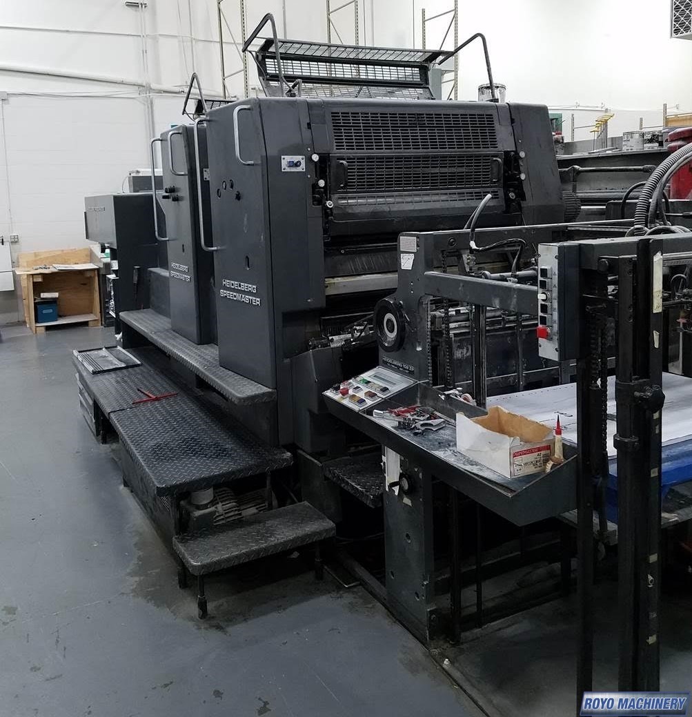 Stream Feeder, Steel plate in delivery, Refrigerated Recirculator, Quick action plate clamps, High pile delivery, Grafix Exactomat powder spray, Double sheet detector, CPTronic, Bacher pin register on clamps, Alcolor Dampening, 12000 sph, Grafix IR Dryer