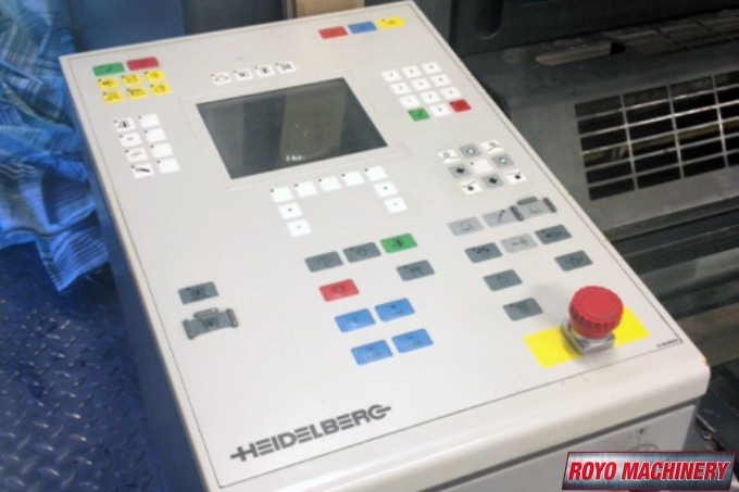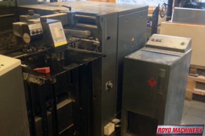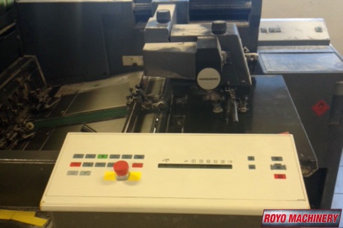 Suction Tape on Feeder, Stream Feeder, Segmented ink blades, Preset, Mediprint Spray Powder Unit, Low pile delivery, Double sheet detector, Diagonal Register, Bacher pin register on clamps, Autoplate, Automatic Blanket Roller and Impression Cylinder Wash, Alcolor Dampening, 15000 sph, Technotrans Refrigerated Recirculator