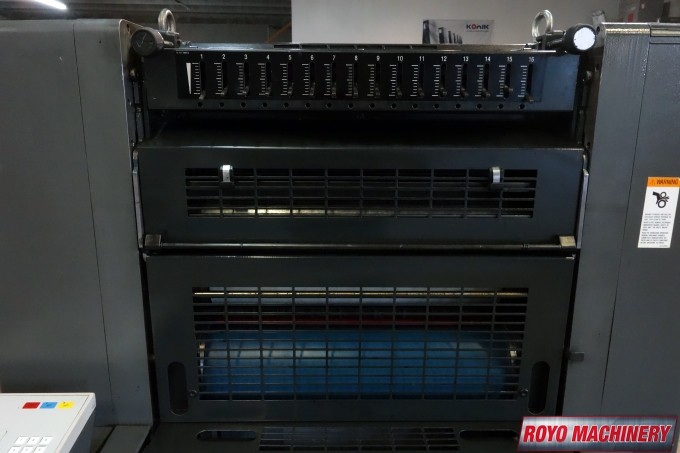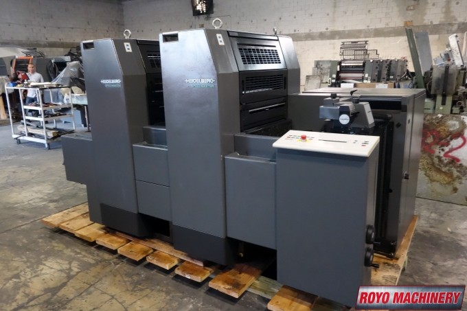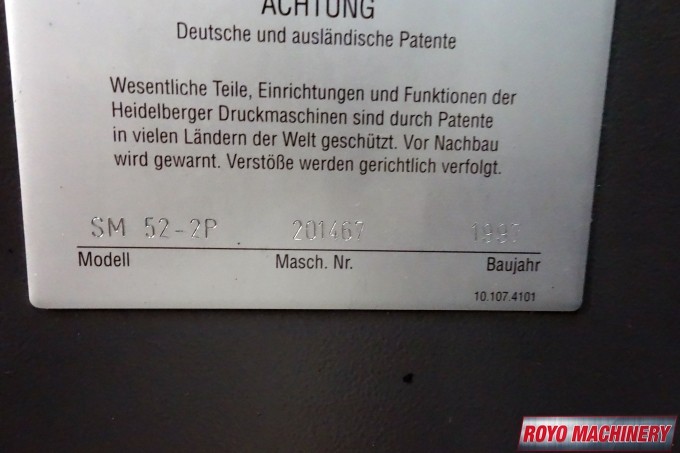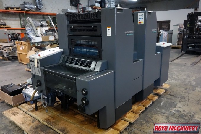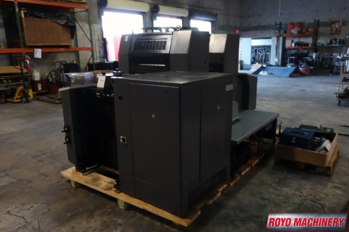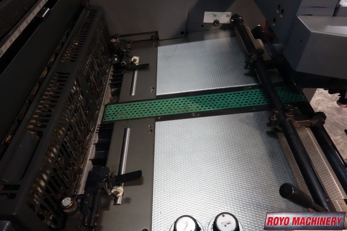 Stream Feeder, Suction Tape on Feeder, Powder Spray, Low pile delivery, Double sheet detector, Bacher pin register on clamps, Autoplate, Automatic ink roller wash, Alcolor Dampening, 15000 sph, Preset, Segmented ink blades, Royse Refrigerated Recirculator, Diagonal Register, Chain delivery