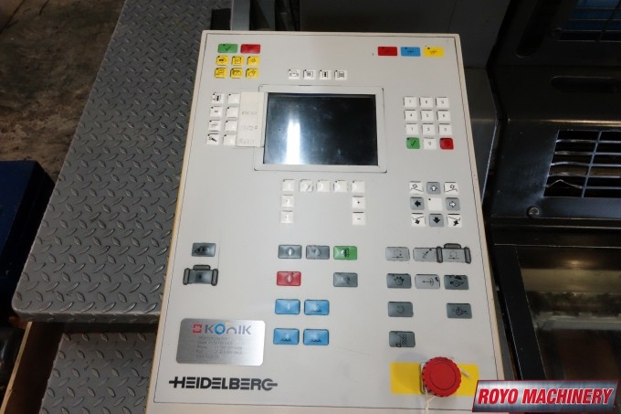 Suction Tape on Feeder, Stream Feeder, Powder Spray, Low pile delivery, Double sheet detector, Bacher pin register on clamps, Autoplate, Automatic Blanket Roller and Impression Cylinder Wash, Alcolor Dampening, 15000 sph, Preset, Segmented ink blades, Royse Refrigerated Recirculator, Diagonal Register, Chain delivery